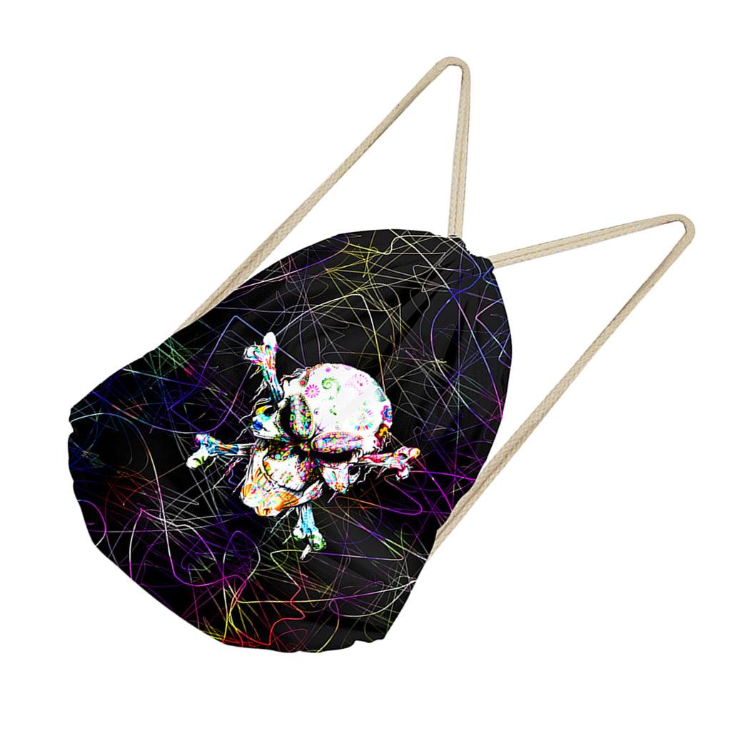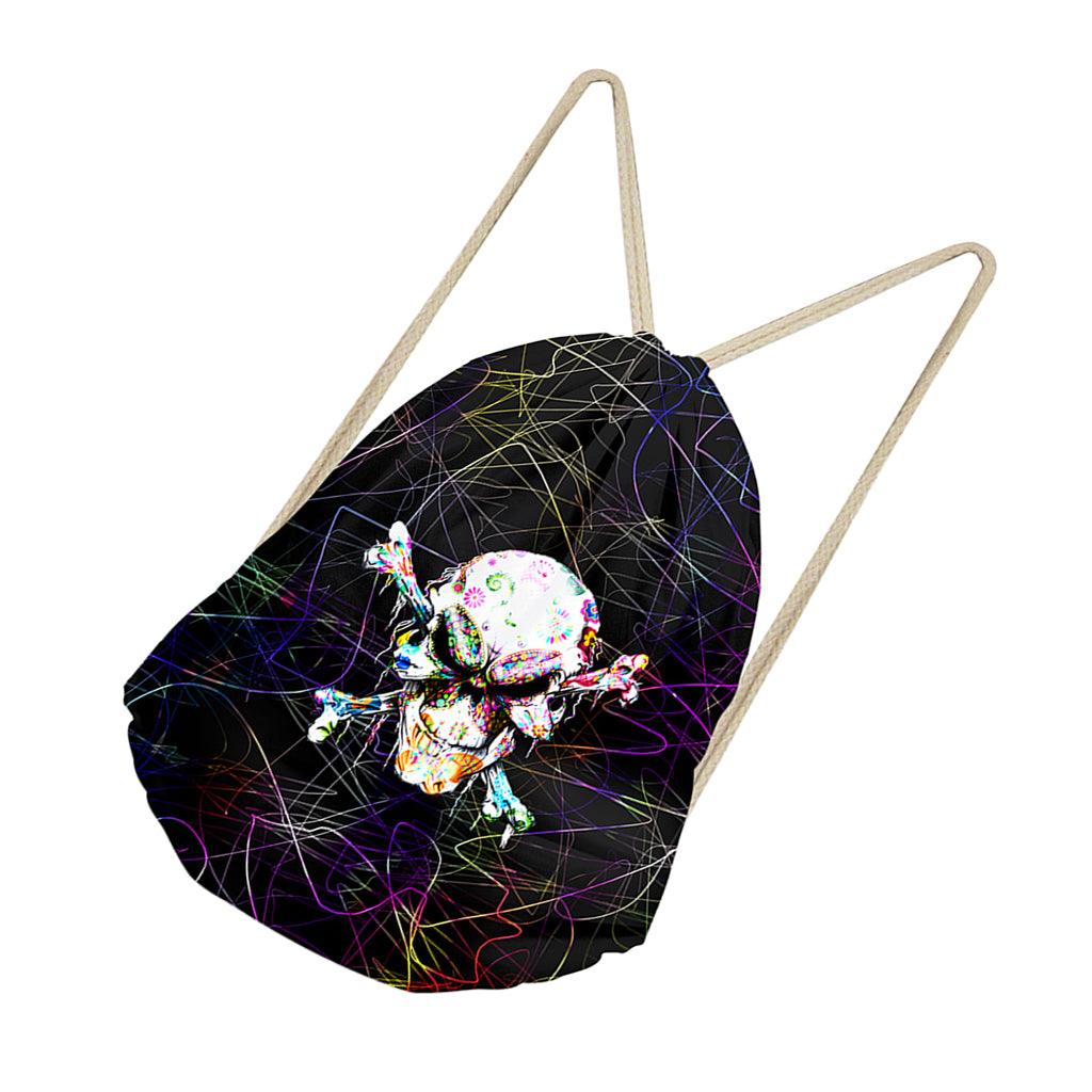 Maxbell Multi-Function Drawstring Bag Storge Bag Skull Gym Travel Backpack Black&White