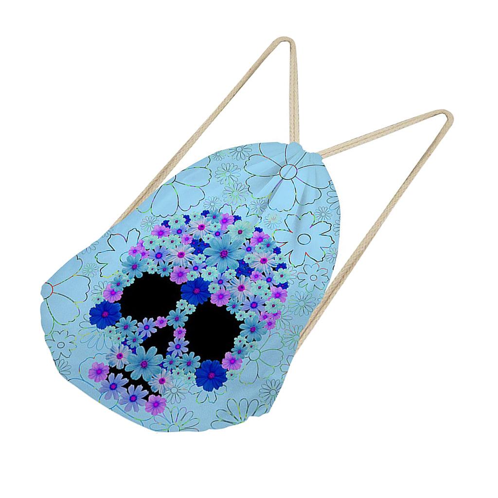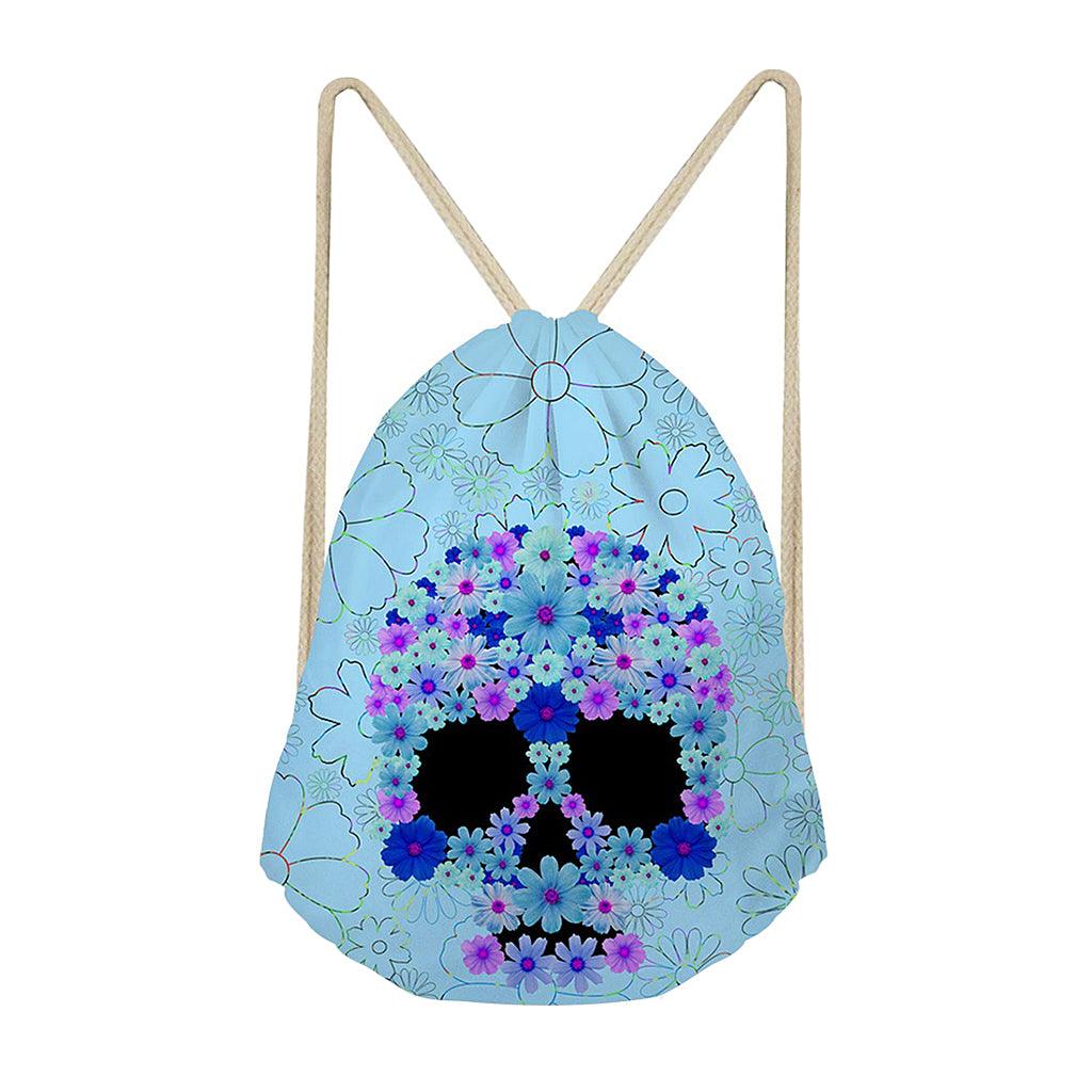Maxbell Multi-Function Drawstring Bag Storge Bag Skull Gym Travel Backpack Blue