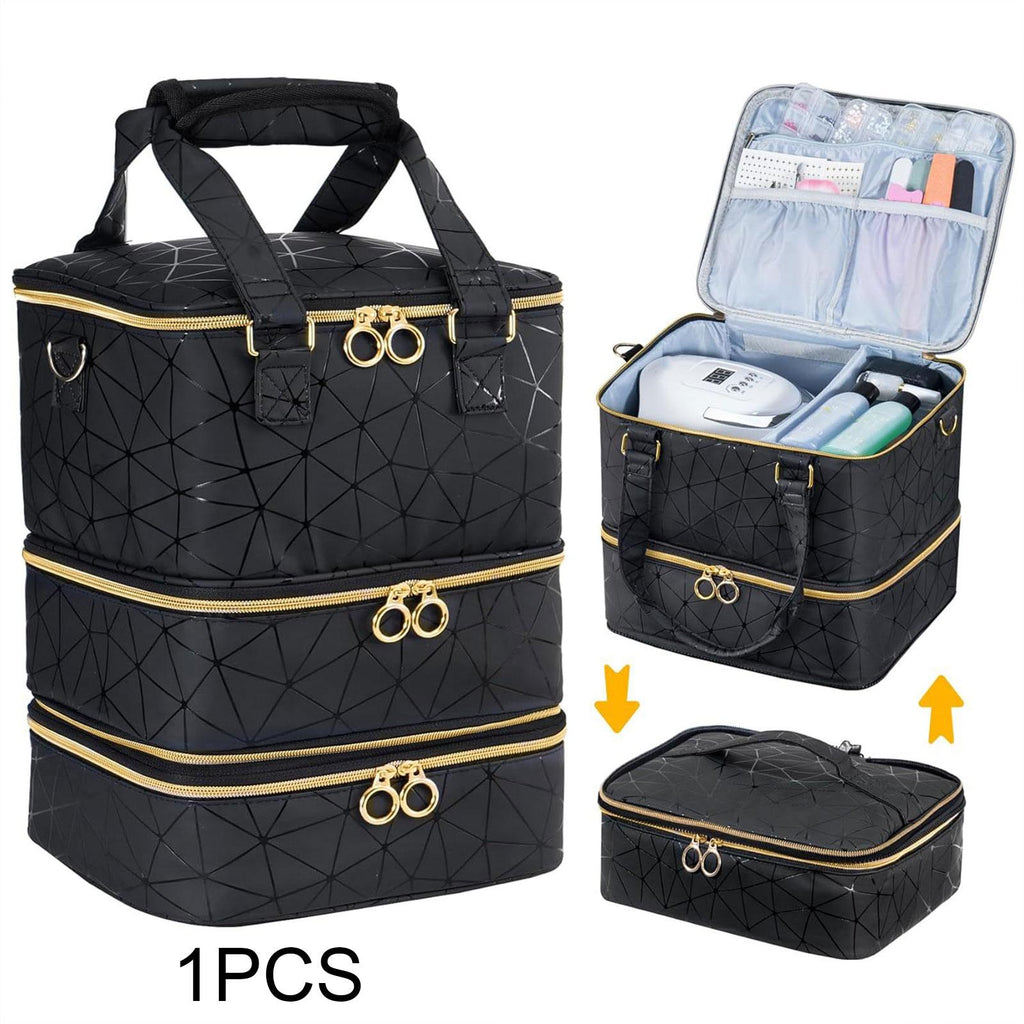 【Removable and multifunctional】: Nail Polish Carrying Case Bag's third layer is detachable and can be used alone to reduce weight. Its compact size (24cmx20cmx31cm/9.45inchx7.87inchx12.20inch) and lightweight properties make it not only an ideal nail polish storage bag, but also a versatile 1, which can be used as a cosmetic bag, essential oil bag or travel toiletries bag