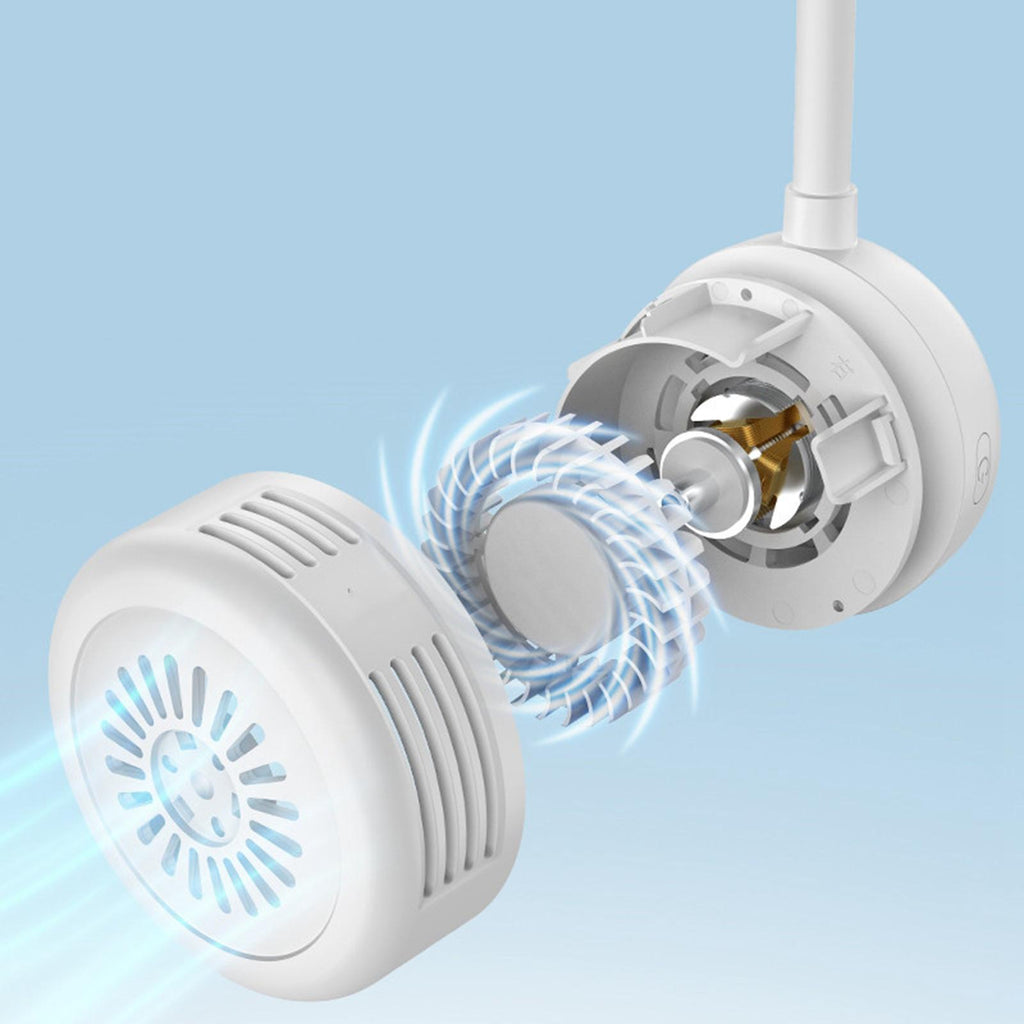 - 【Portable Neck Hanging Fan】: Hanging bladeless fan multiplies wind, and quickly cools; a bladeless fan be used safely by children and the elderly. For a variety of scenes, sports, desk, office, travel, etc.