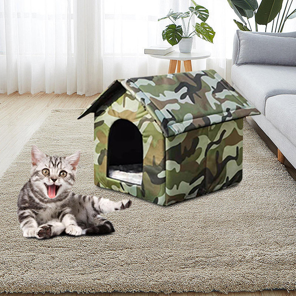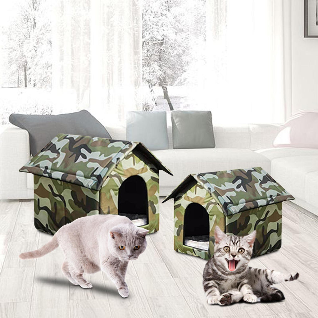 High Quality Material: Made of waterproof Oxford Cloth, durable, inside warm, The external waterproof structure allows it to be placed outside giving feral cats warm home.