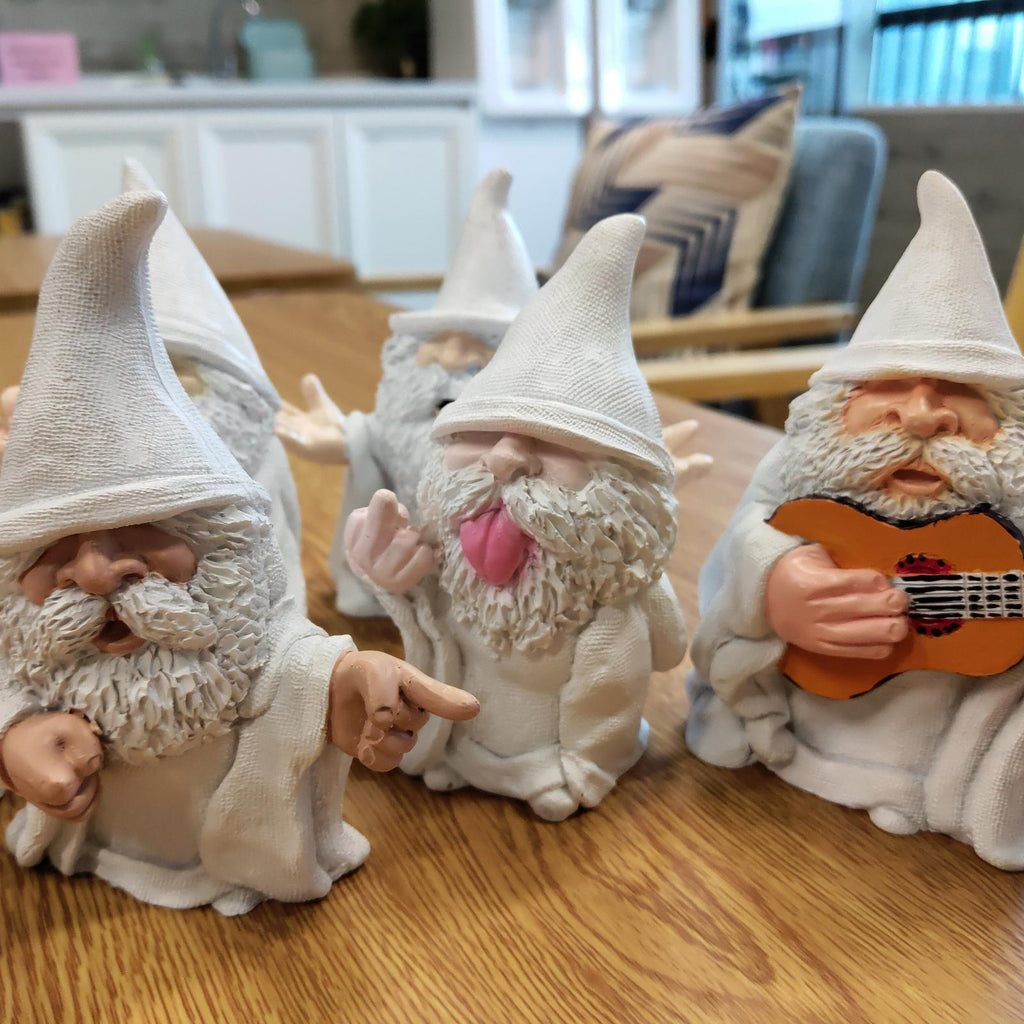 - This cute gnome figurine is great for gardeners looking to personalize their home and garden with funny gnome statues, this gnome statue set makes a great gift for housewarmings.
