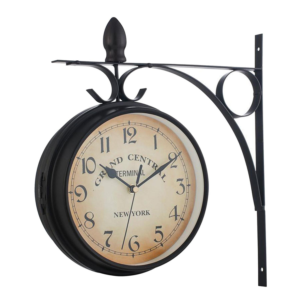 This retro dual face clock are quiet, non- ticking and includes a metal wall bracket and requires 2 x AA batteries(not included)