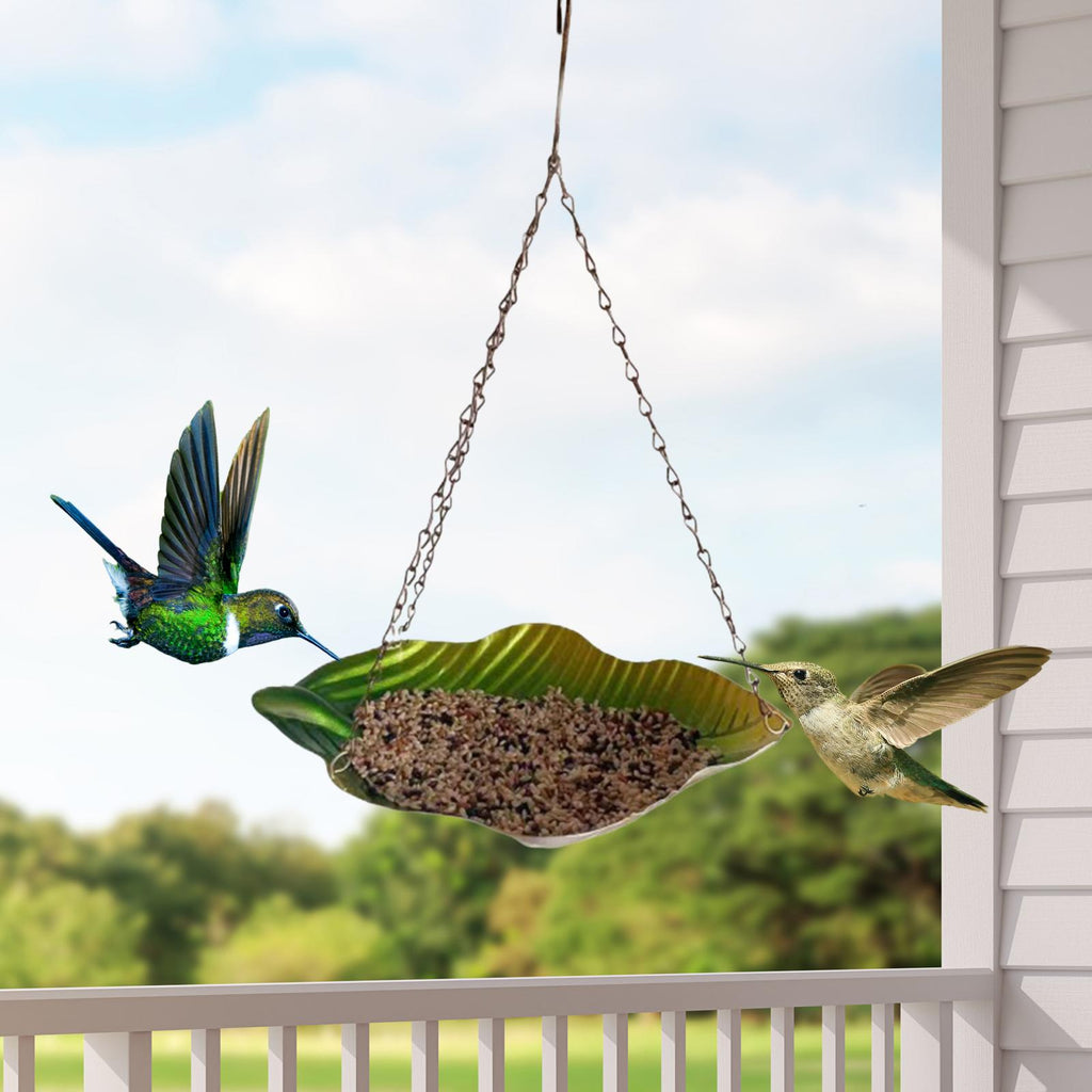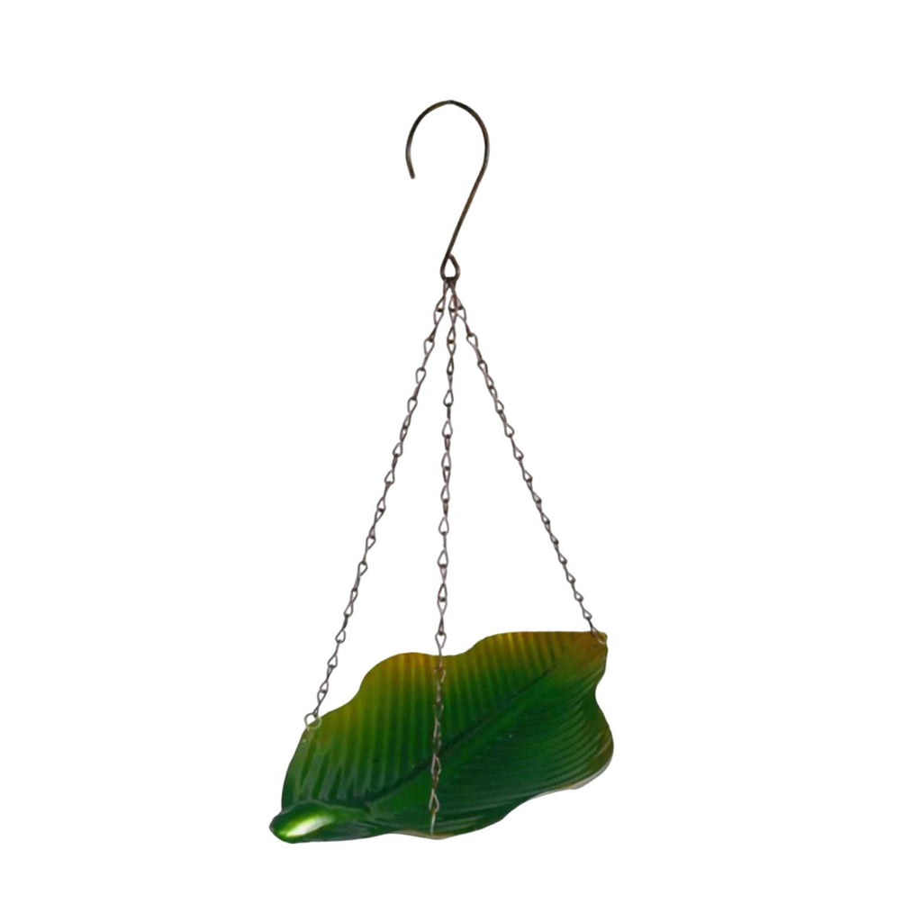 Maxbell Outdoor Hanging Bird Feeder Leaf Decor Bird Food Tray for Yard Lawn Backyard 25.5x17.5x37cm green