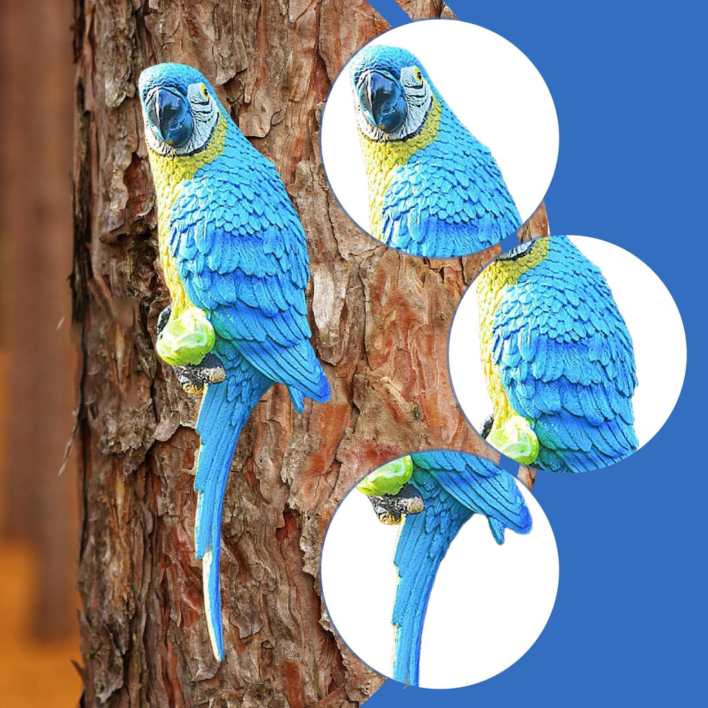 Maxbell Outdoor Parrot Figurine Tree Decor Bird Sculpture for Outside Lawn Landscape Right Blue