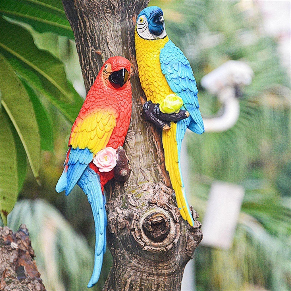 【Lifelike Resin Craftsmanship】: Crafted from resin, this parrot figurine offers an incredibly detailed and lifelike appearance, making it a standout piece for garden decoration or as a realistic model toy and educational tool