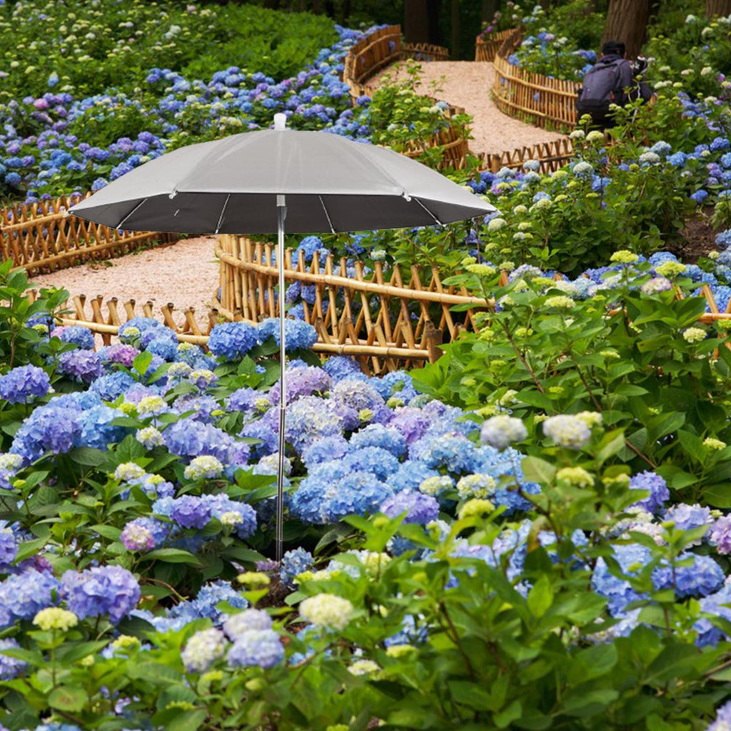 【Premium Material】: Made of polyester fiber material, this garden umbrella can be reused for a long time. This parasol has a sturdy alloy frame with adjustable height to accommodate plants of various sizes