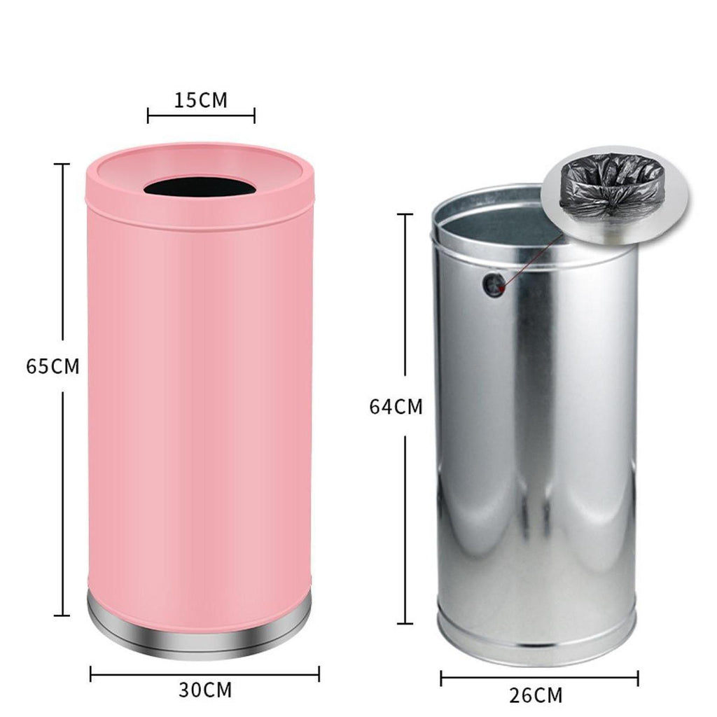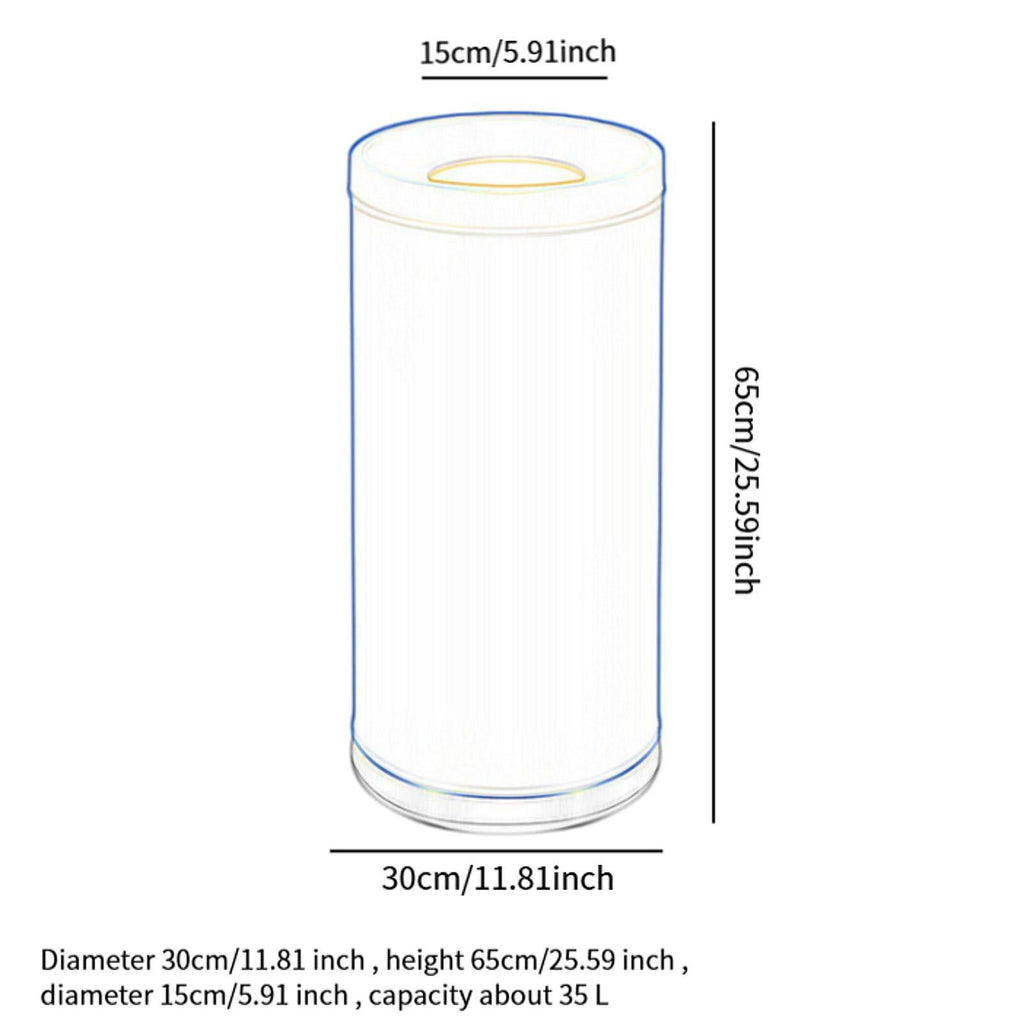 【Premium Material】: This outdoor trash can is made of sturdy stainless steel material, with a diameter of 30cm/11.81inch, a height of 65cm/25.59inch, an opening diameter of 15cm/5.91inch, and a capacity of approximately 35 L