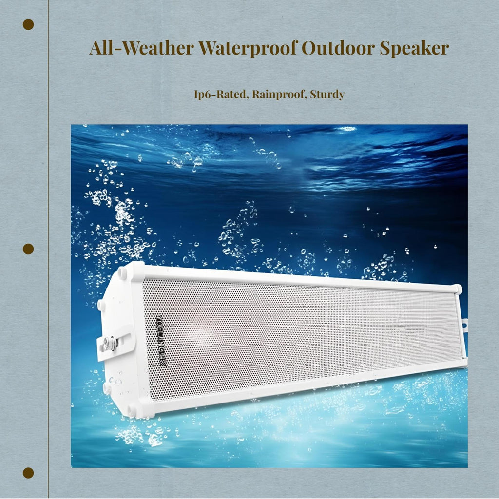 Outdoor Waterproof Wall Mount Speaker, Stereo Sound, Indoor Outdoor Audio White 80.5x25x23cm