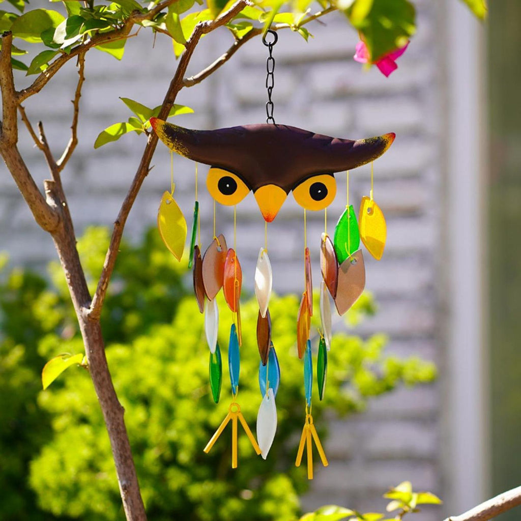 【Unique design】: The Owl Wind Chime is made of metal and glass material, with unique shape and rich elements. Good choice for patio decoration.