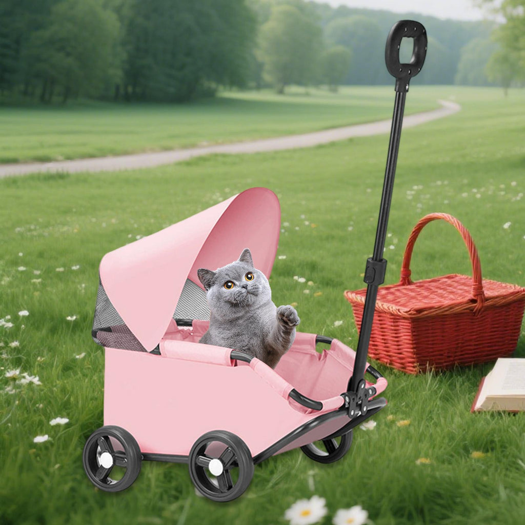Maxbell Pet Stroller Large Capacity Gifts Pet Carrier for Travelling Outdoor Walking Pink