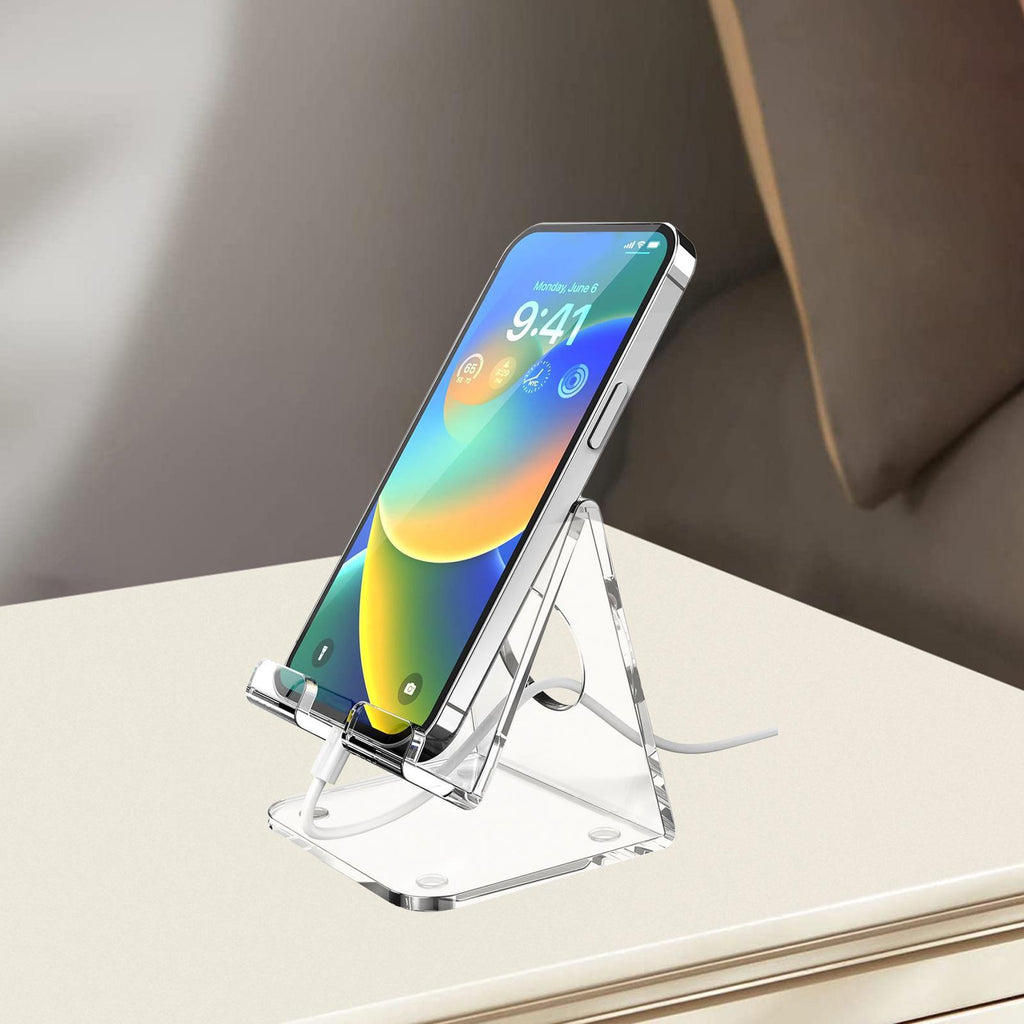 - 【Material】: This phone stand is made of sturdy acrylic material, ensuring durability and longevity. It's resistant to wear and tear, providing reliable support for your device.
