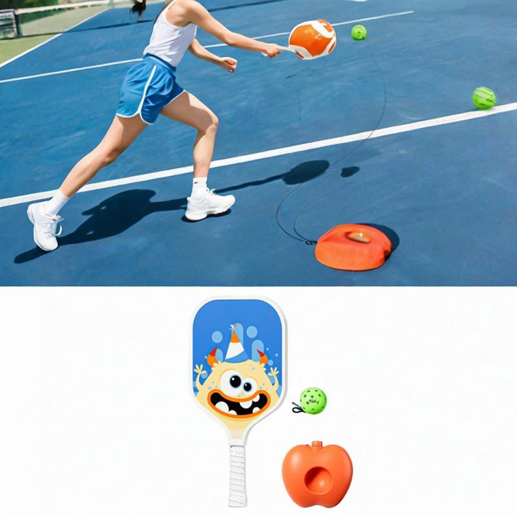 【Comprehensive Training Set】: The set includes everything needed to start playing right away, a children's paddle, a sturdy base, and a pickleball with a diameter of 74mm