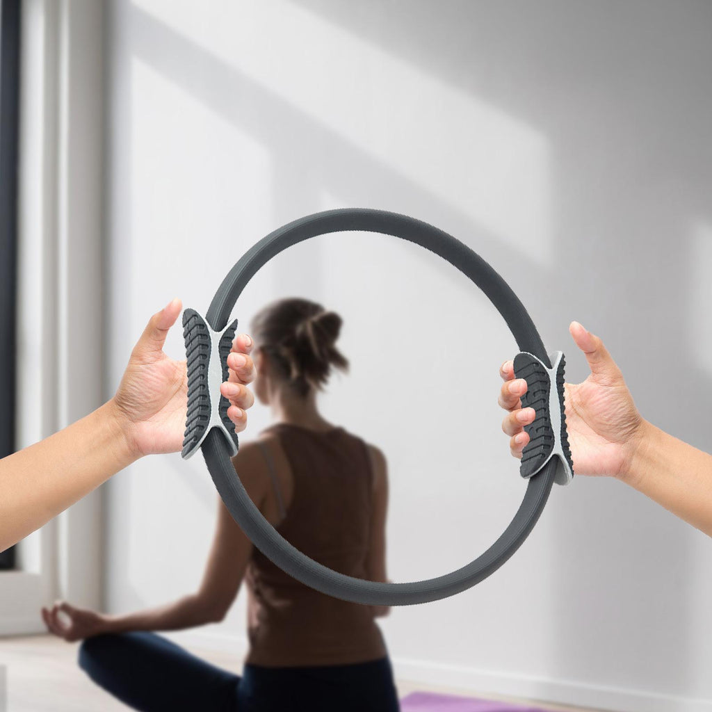 Pilates Ring Circle Portable Non Slip Women Fitness Ring for Waist Legs Arms Black