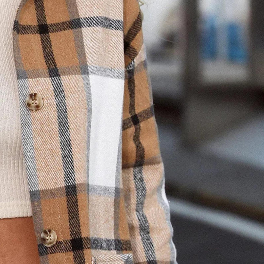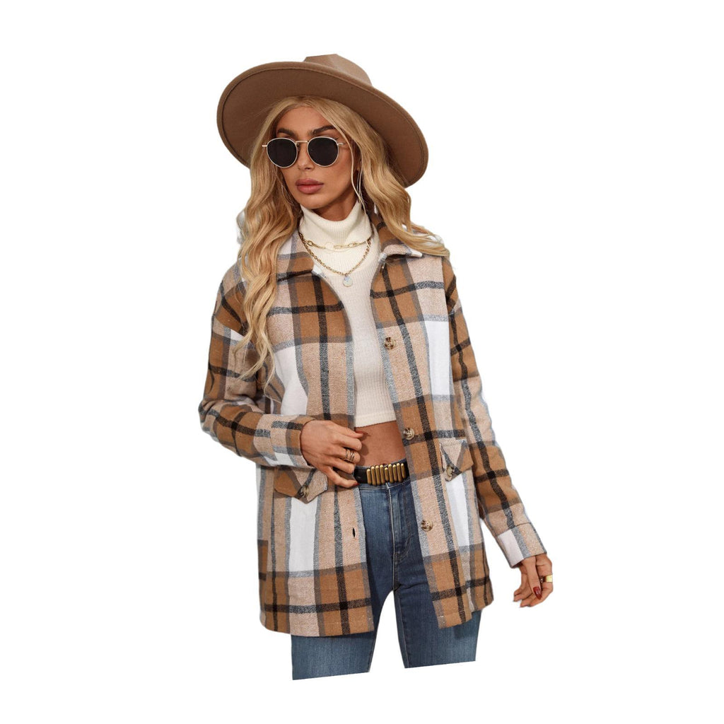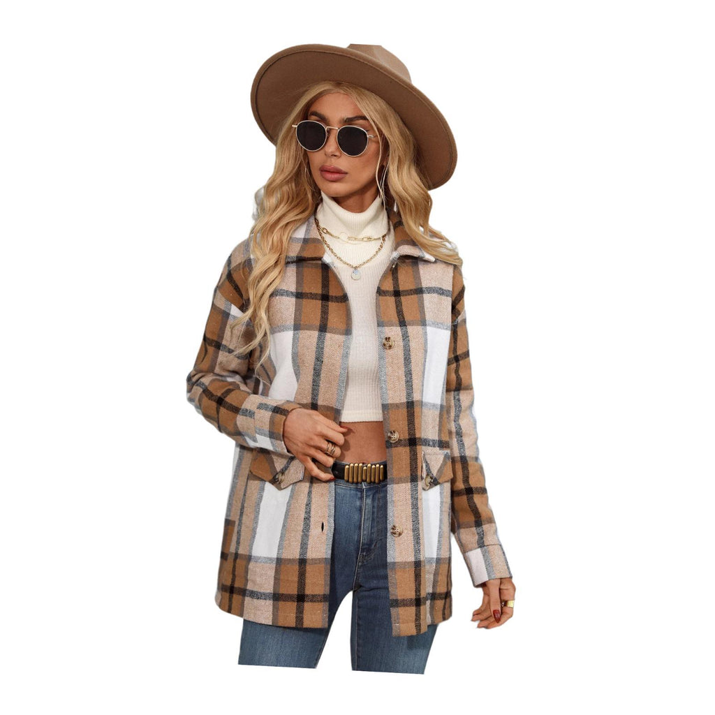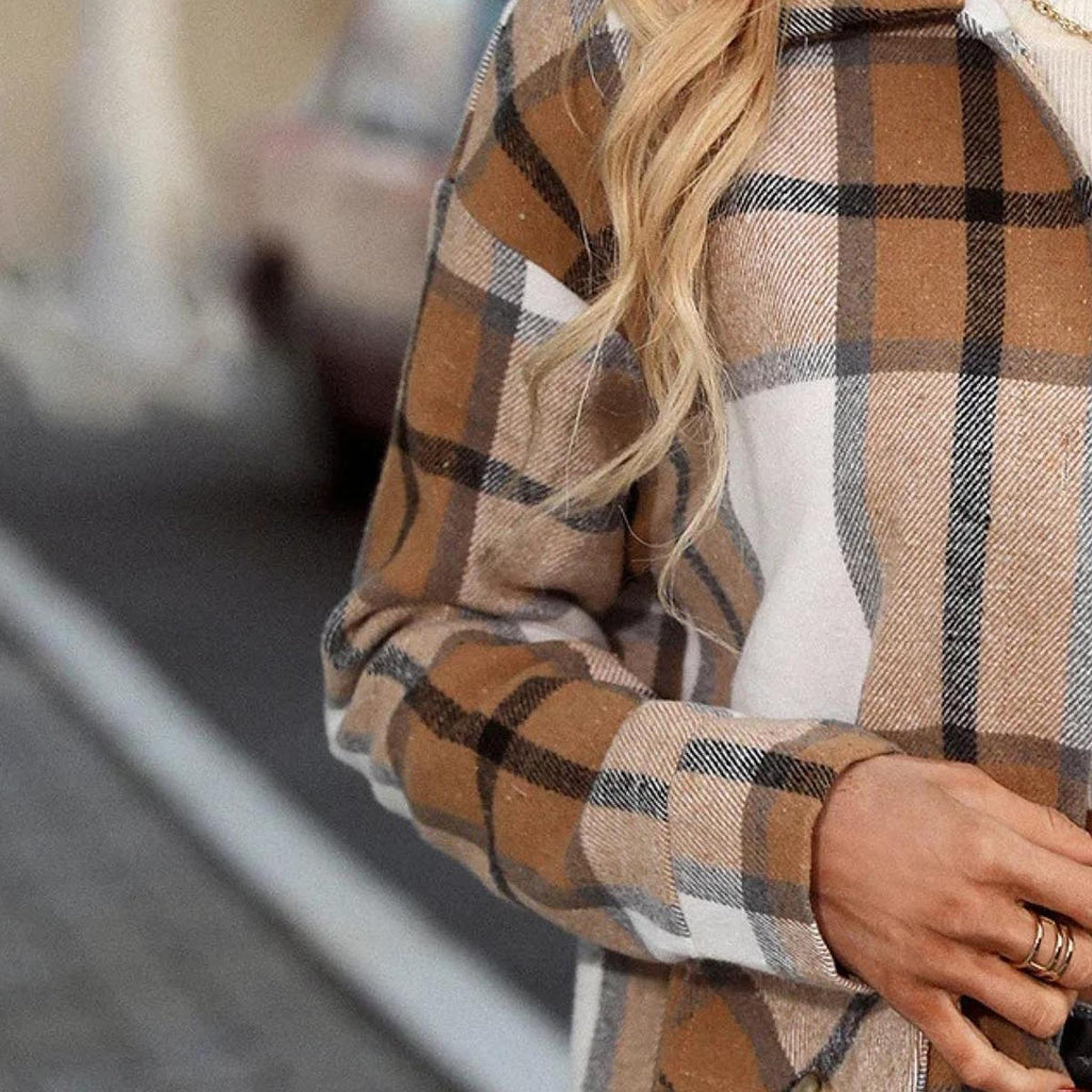 Maxbell Plaid Shirt Clothes with Pocket Fashion Womens Shirt for Outdoor Winter Work L Khaki
