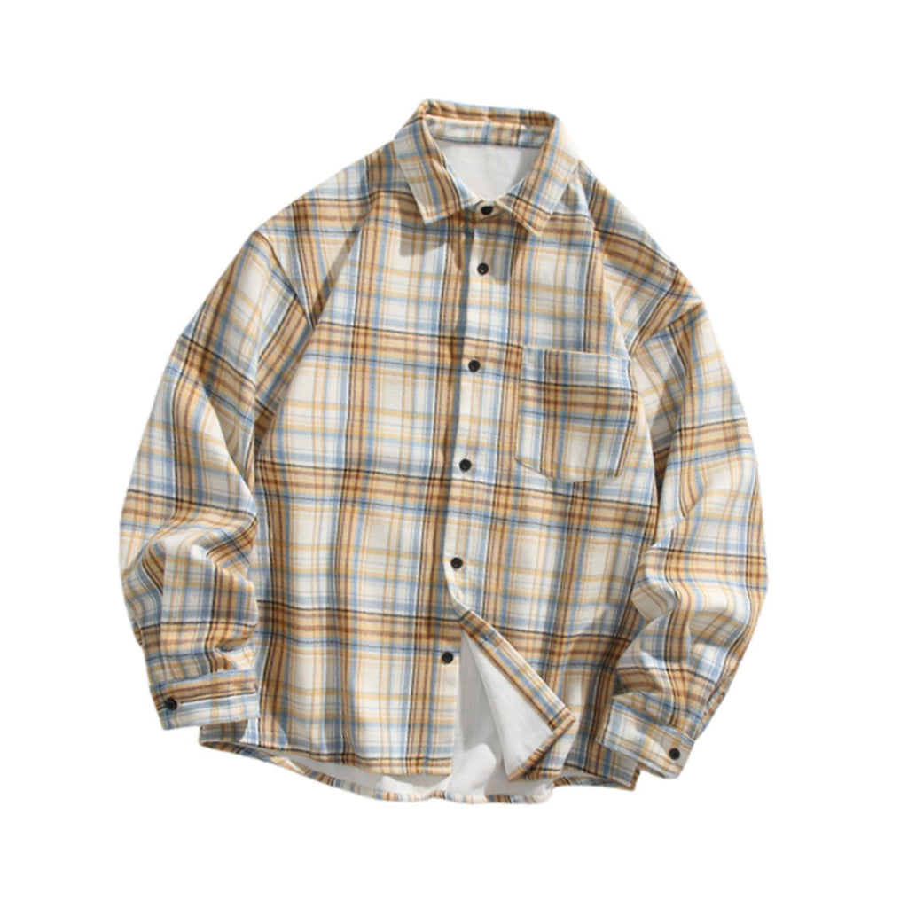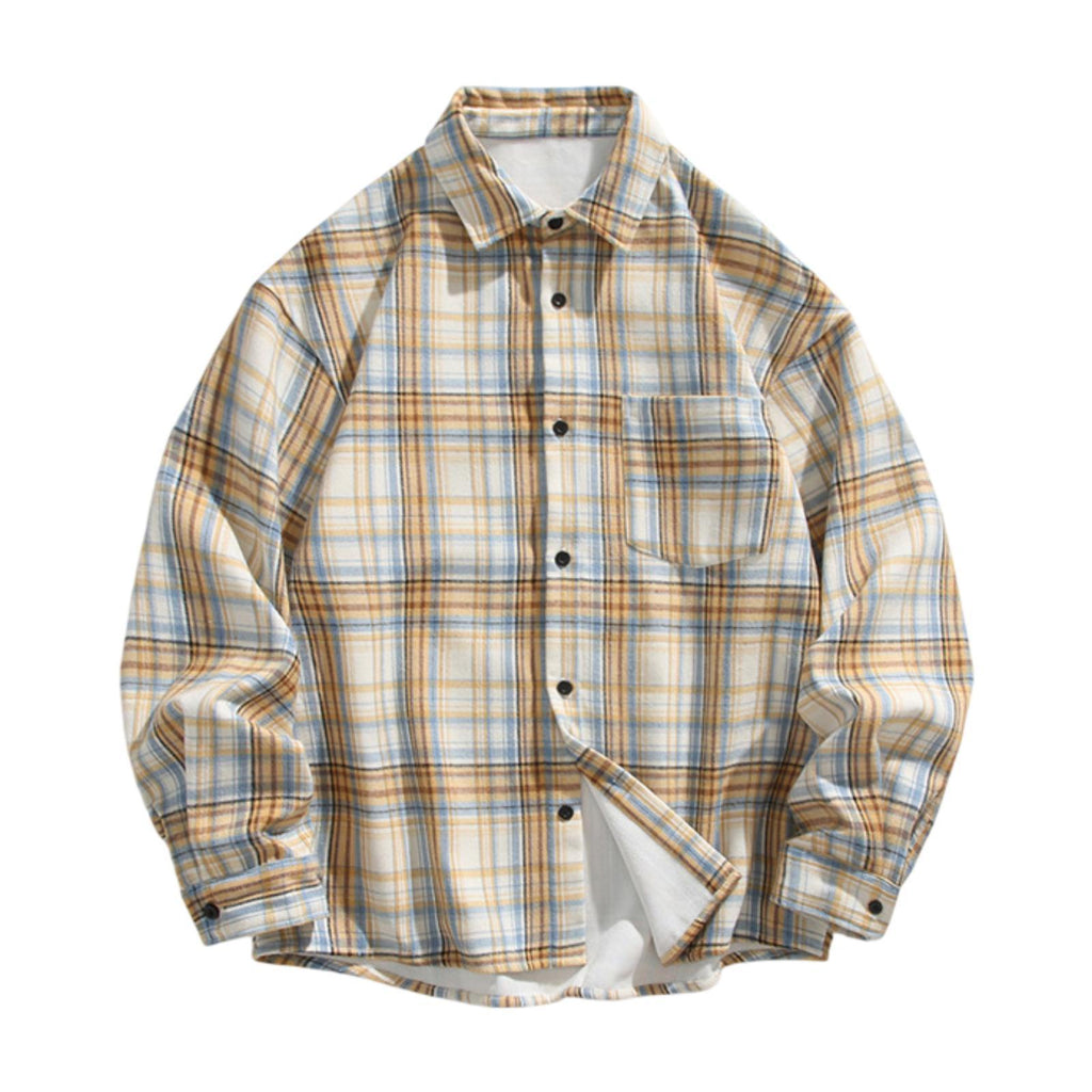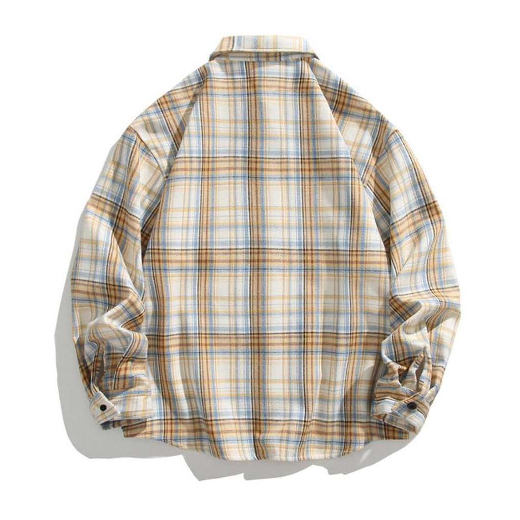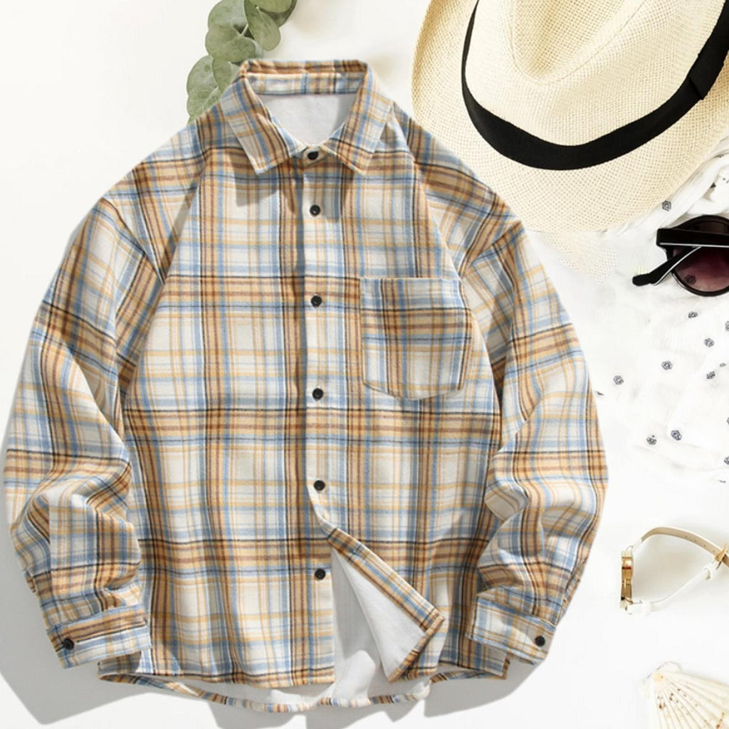 【Stylish Design】: The classic plaid pattern combined with a lapel collar gives this shirt a timeless look, making it suitable for both casual outings and more formal occasions