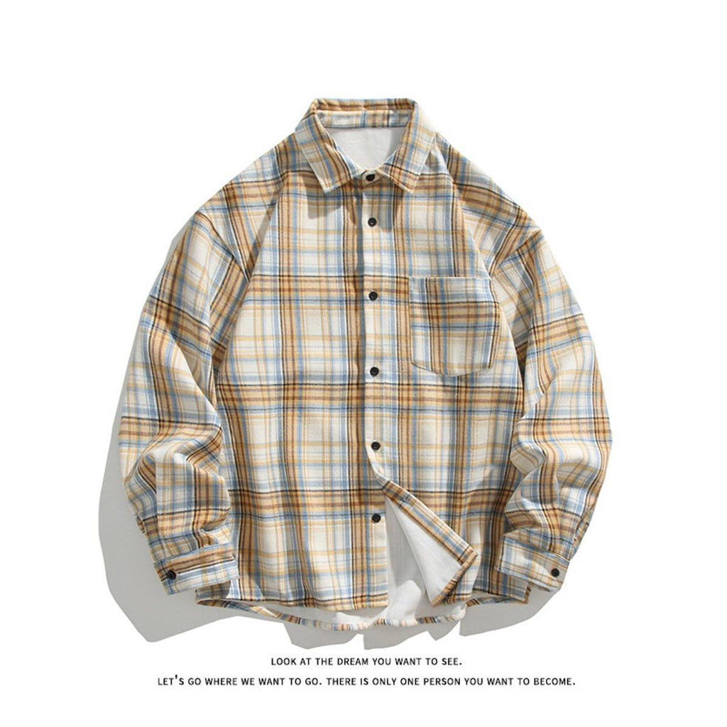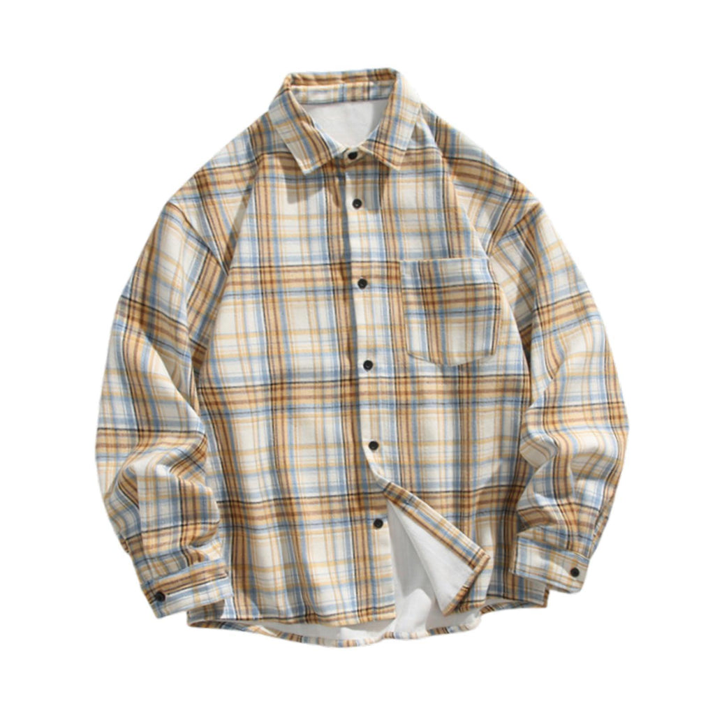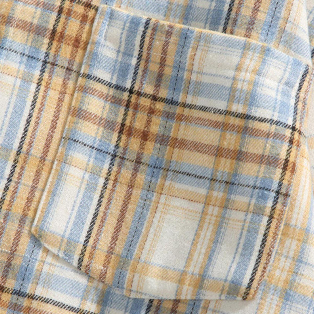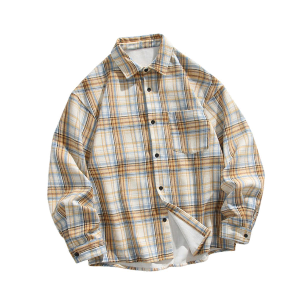 【Stylish Design】: The classic plaid pattern combined with a lapel collar gives this shirt a timeless look, making it suitable for both casual outings and more formal occasions