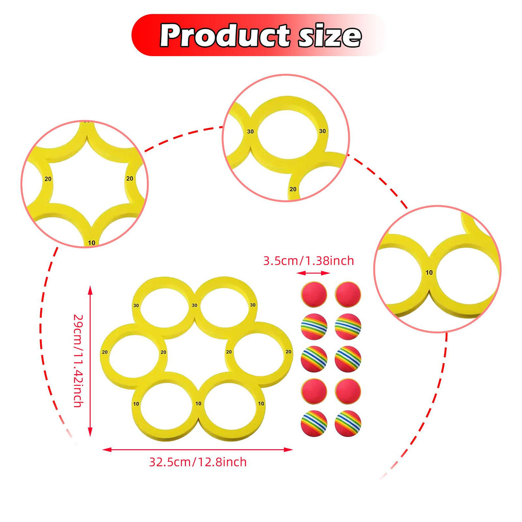 【Lightweight and Resilient Construction】: The lightweight design of the Tossing Balls (3.5cm/1.38inch in diameter) combined with the soft yet sturdy throwing ring (32.5cmx29cm/12.80inchx11.42inch) ensures easy handling without deformation over time