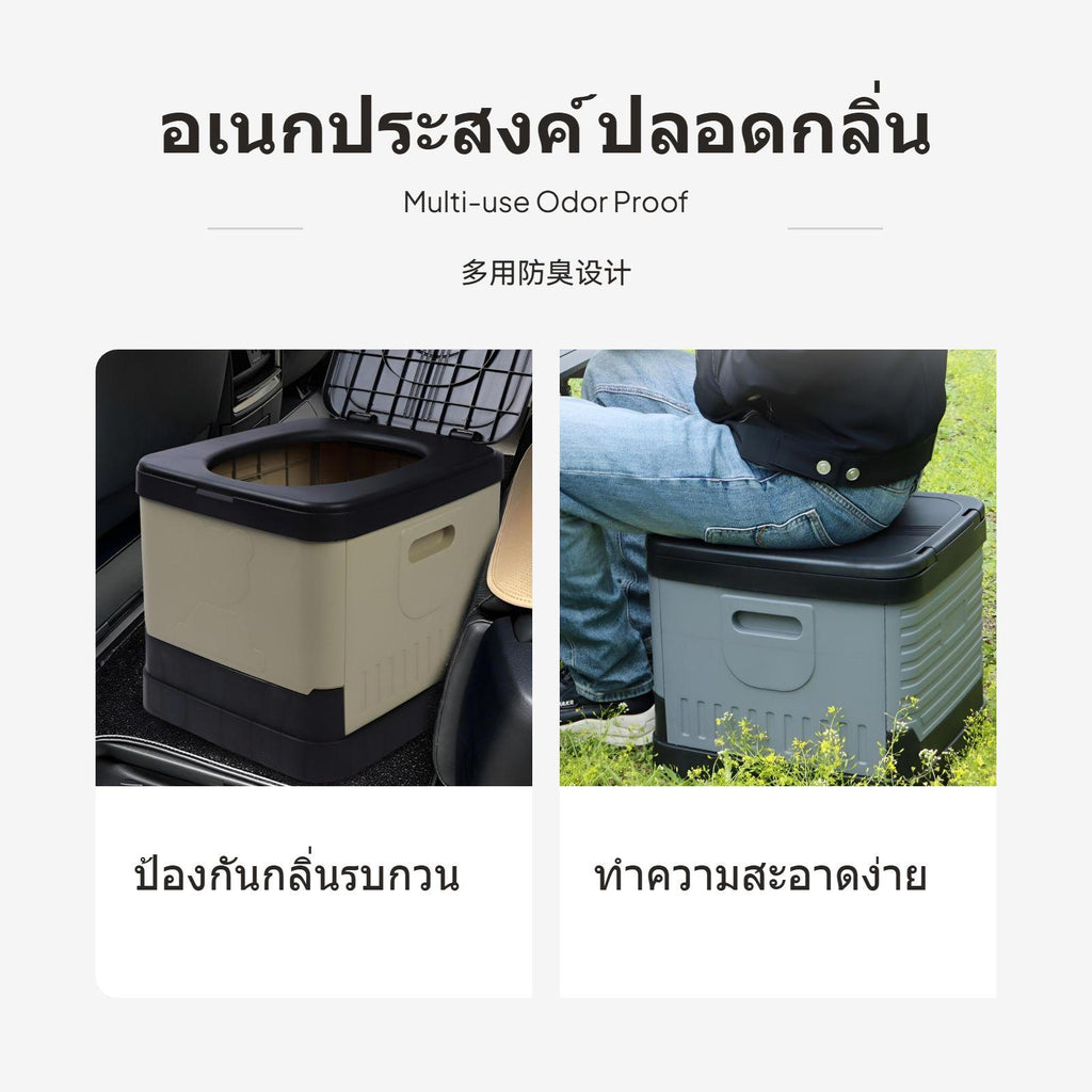 Portable Folding Car Toilet, Multi-Functional, Odorresistant, Outdoor Emergency Khaki