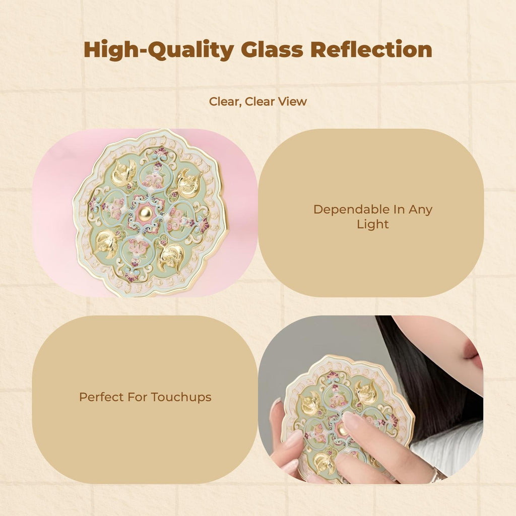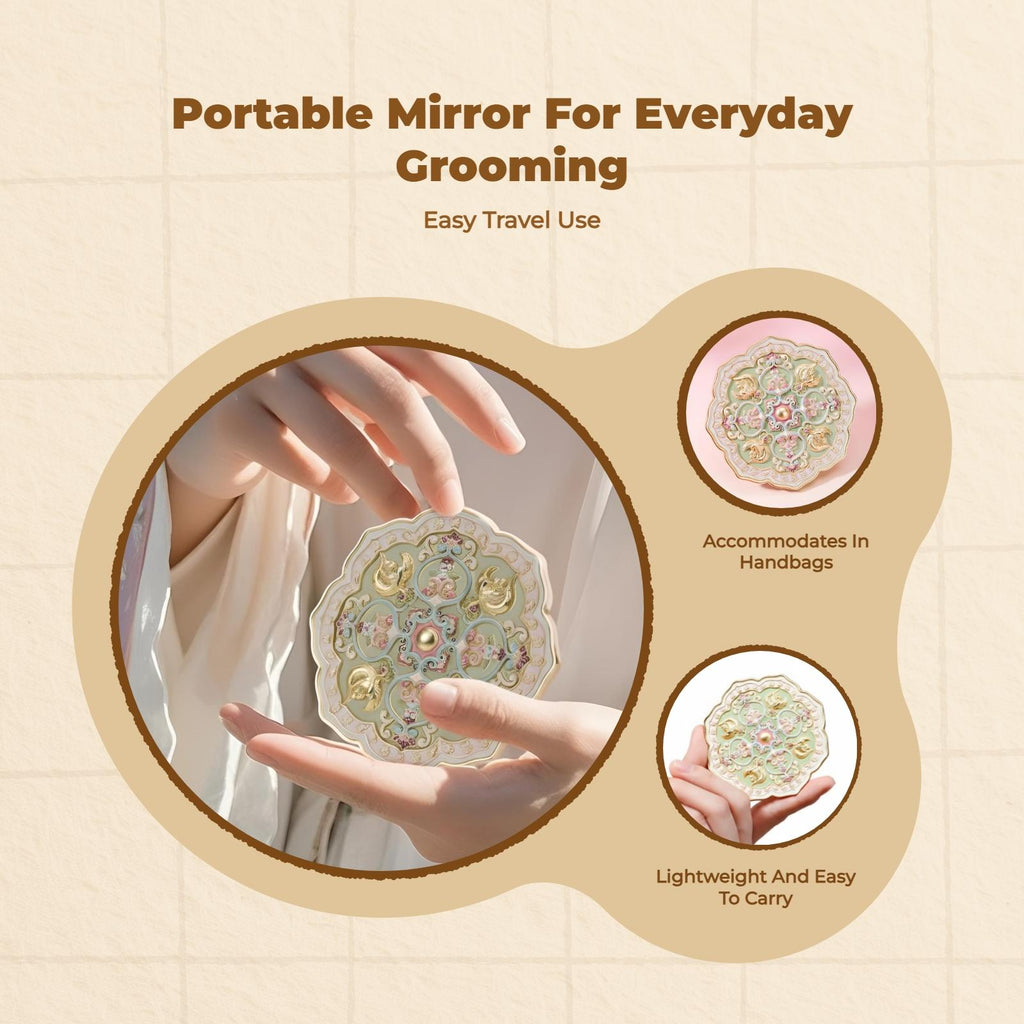 【Portable Makeup Mirror for on the move Use】This mini folding cosmetic mirror blends Chinese aesthetics with practical portability, making it an perfect choice for travel, common makeup, and quick adjustups anytime, anywhere.【High-Quality and resilient】Carefully crafted for clear views and sturdy construction, this mirror is built for long-term use at home, in hotels, or while traveling.【Versatile for Multiple Settings】Suitable for bathrooms, bedrooms, dressing tables, or as a convenient accessory in your travel kit, this mirror suits a range of events including parties and business trips.【Gift-Ready and Artistic Design】Featuring an elegant Chinese-inspired design, this mirror makes a thoughtful gift for birthdays, weddings, or as a creative keepsake and gallery-inspired memento.【Practical and Easy to keep】Its small size allows for convenient storage in handbags or makeup bags, so you constantly have a dependable mirror for precise makeup application whether at home or on the move.