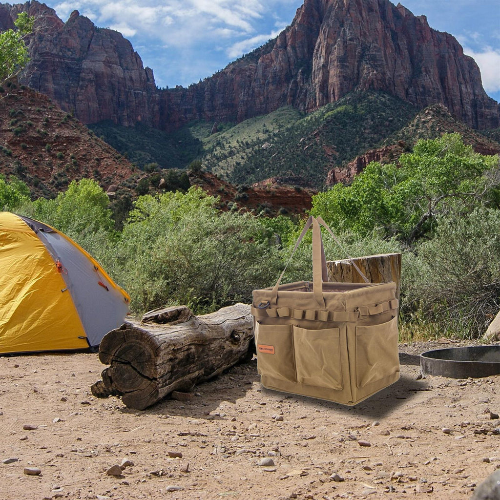 Maxbell Portable Oxford Multi Pockets Garden Tool Storage Tote Bag for Outdoor Khaki