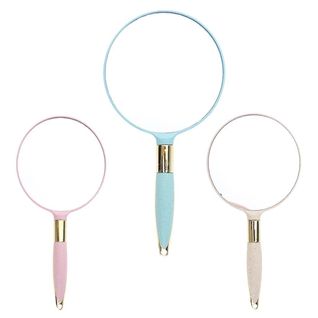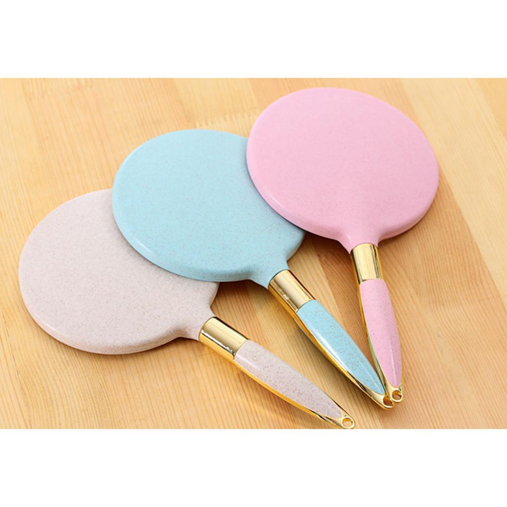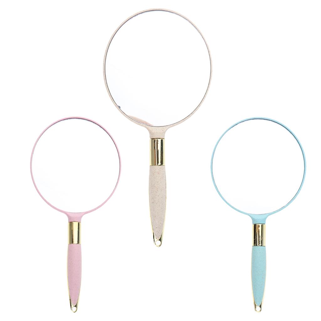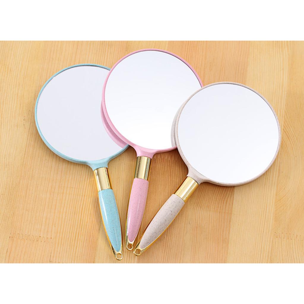 Handheld mirror with handle, for vanity makeup home salon travel use.