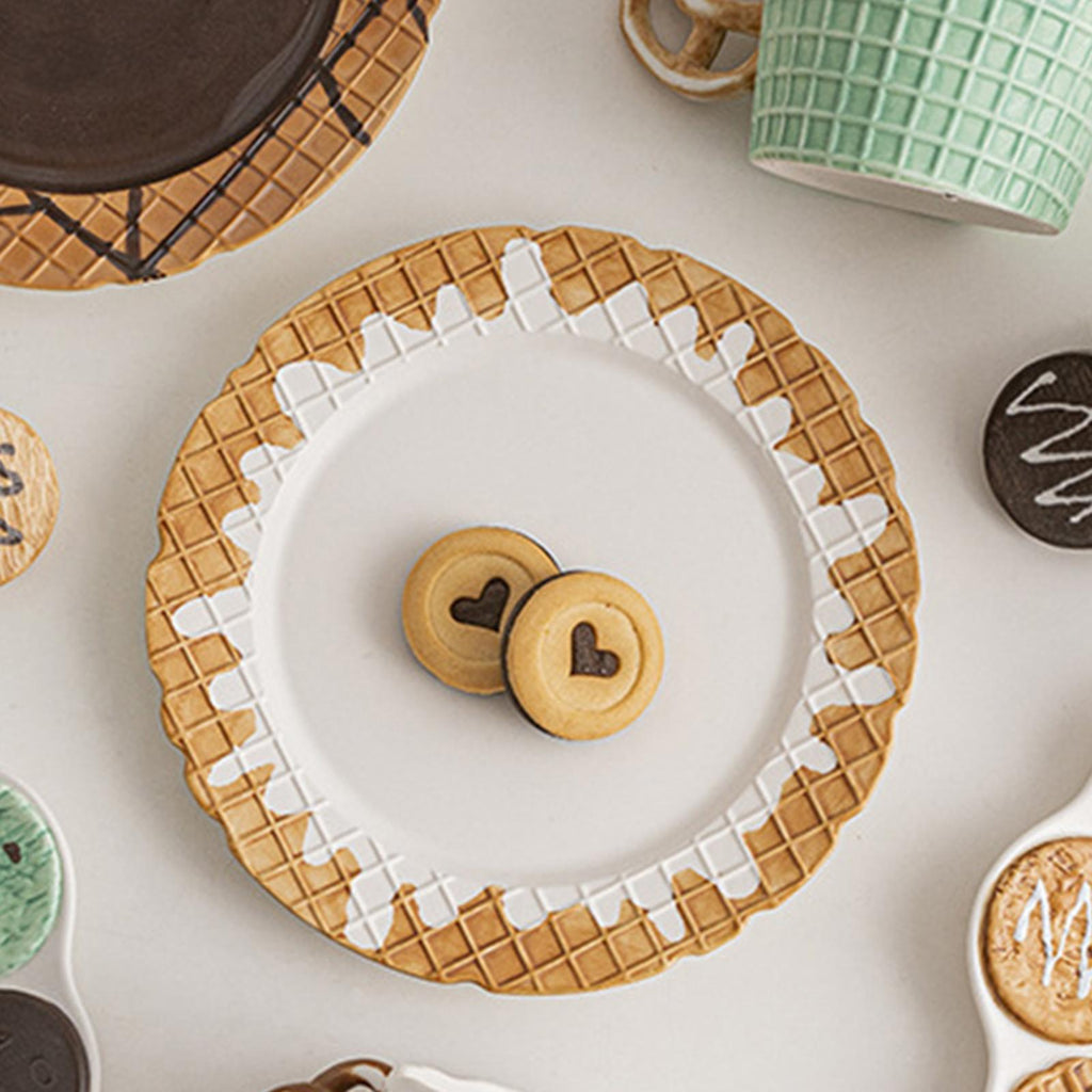 【Versatile functionality】: Designed for versatility, the smooth surface of this biscuit shaped dinnerware makes it easy to clean and great for serving breakfast or afternoon tea