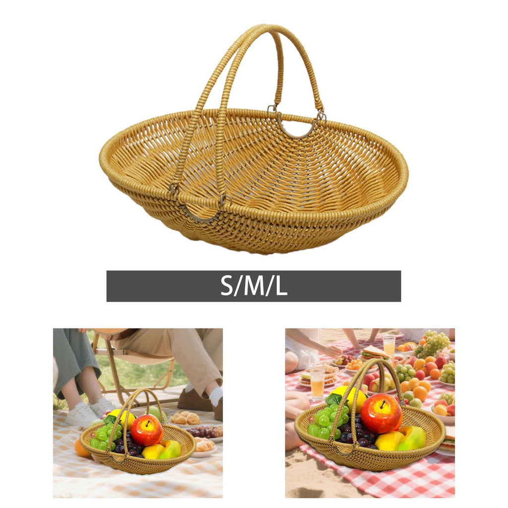 【Versatile Woven Storage Basket】Place fruit snacks on a picnic, store family's toiletries, towels, etc., or use as a kitchen storage basket for vegetable, fruit and bread