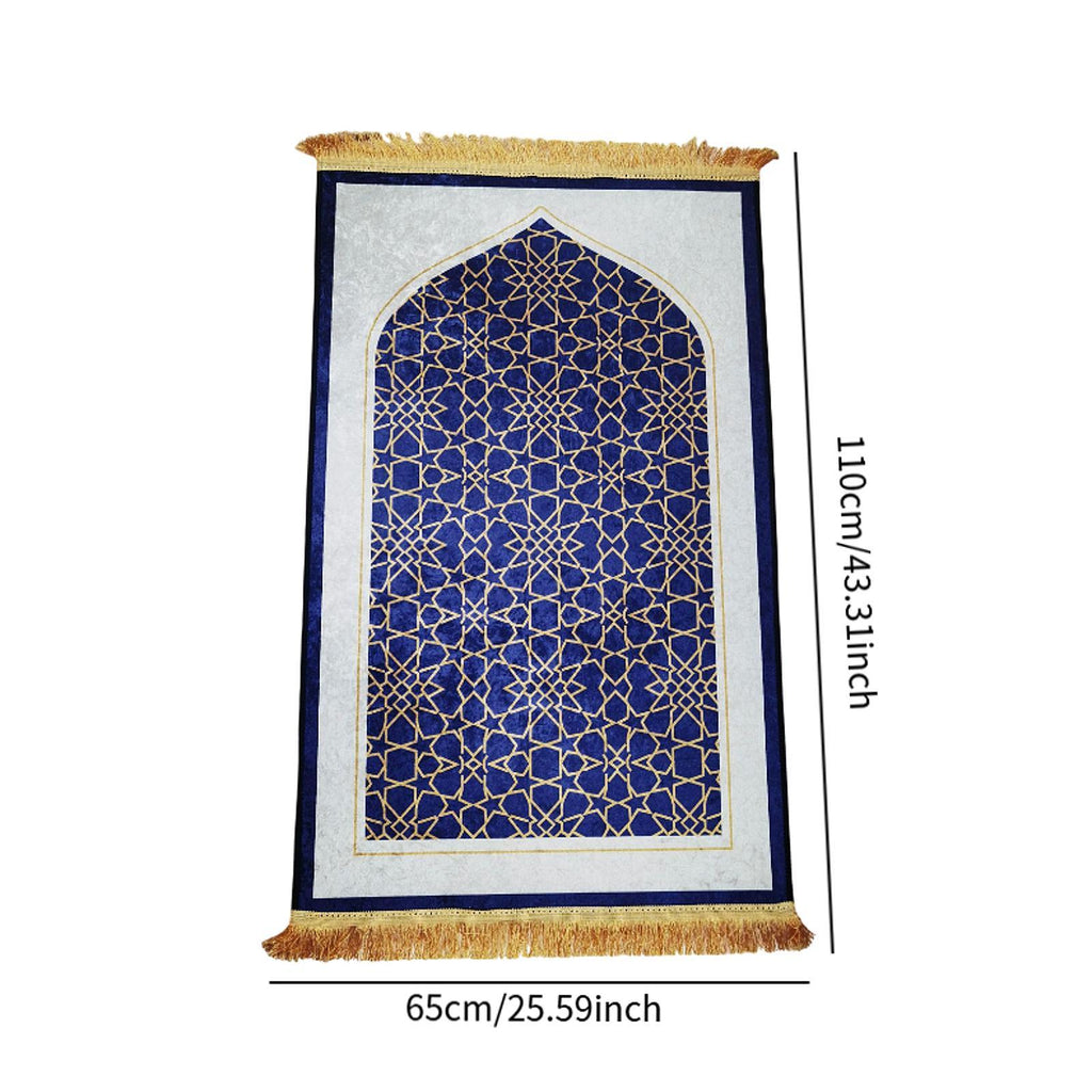 【Elegant Design】: Featuring intricate patterns and tassel edging, this rectangular prayer mat is meticulously crafted to provide a luxurious texture, ensuring comfort even on hard surfaces