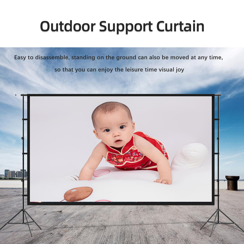 【Premium Material】: The cloth projector screen with iron stand, with fine texture, reliable, sturdy, simple to install, easy to carry, and can be set up anywhere.