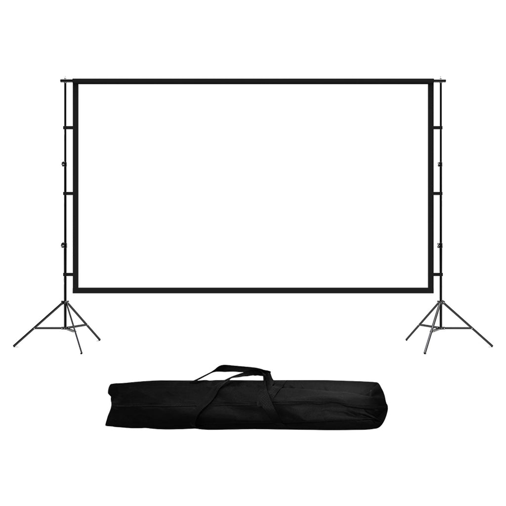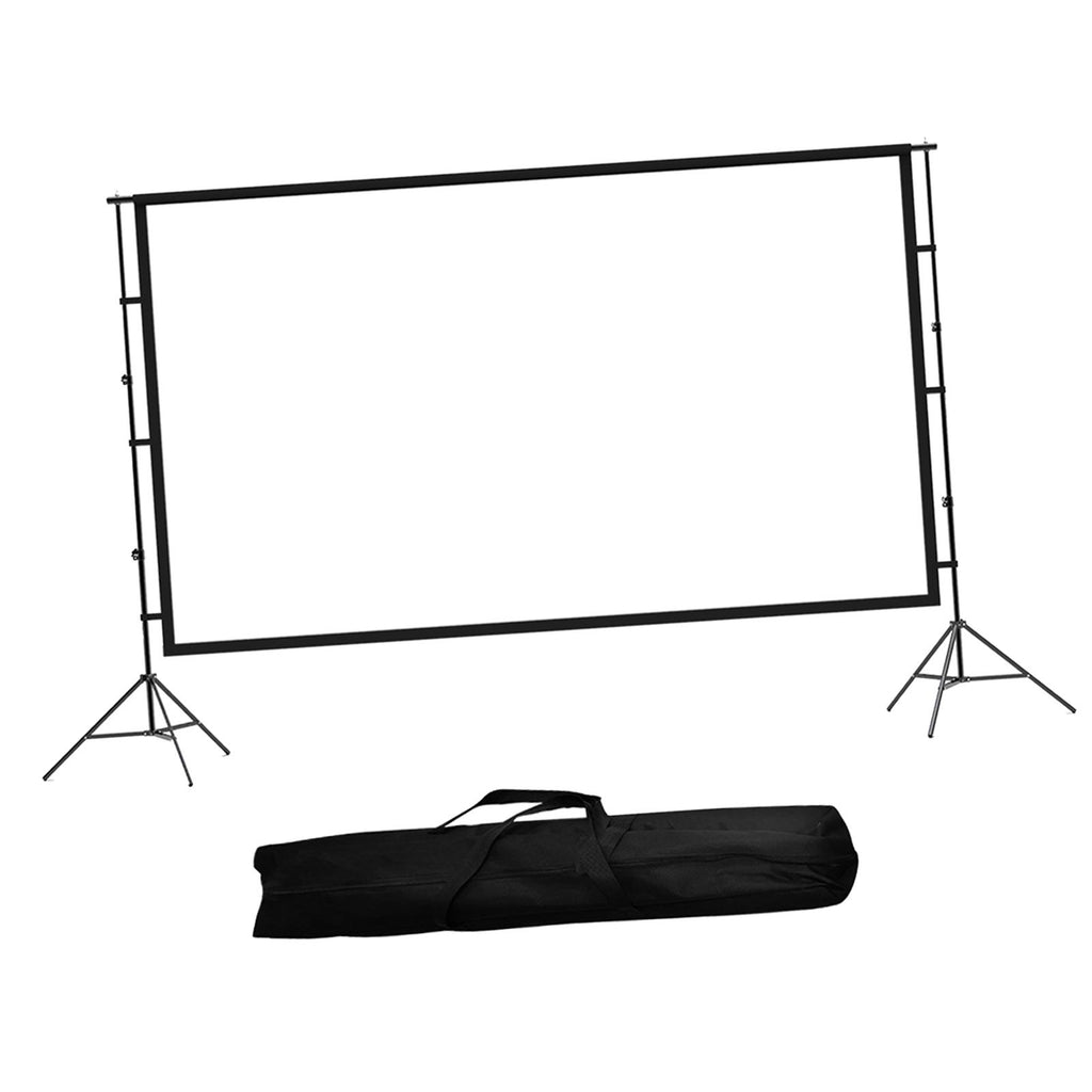 【Versatile and Stylish】: This 16:9 portable projector screen with stand effortlessly blends into your home environment, transforming your living room or bedroom into a cinema without damaging the walls.