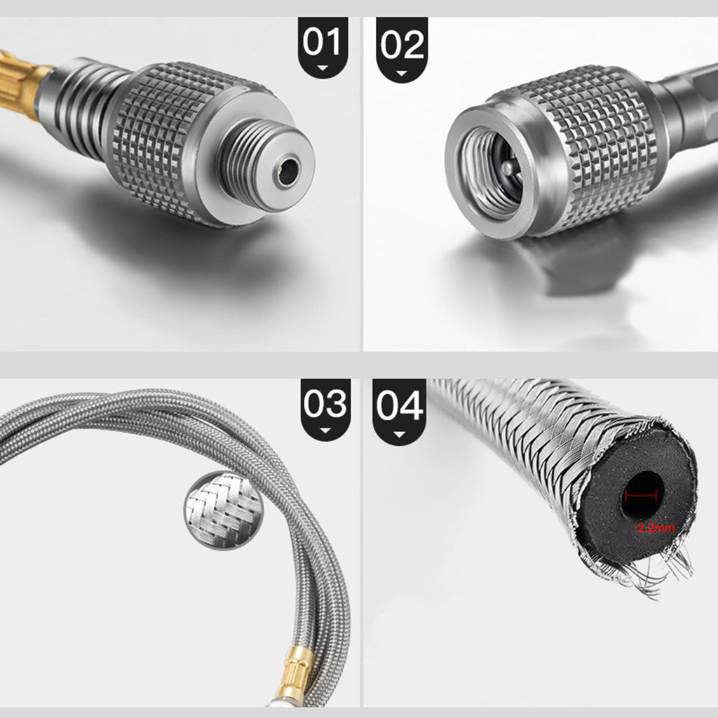 【Quality Material】: This outdoor camping equipment gas extension hose is made of alumina, featuring a surface layer woven from 56 stainless steel wires for enhanced safe and durability.
