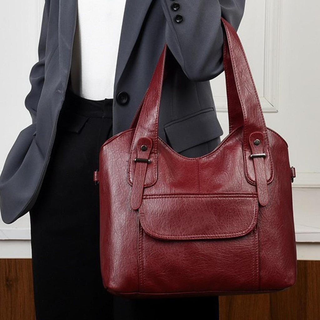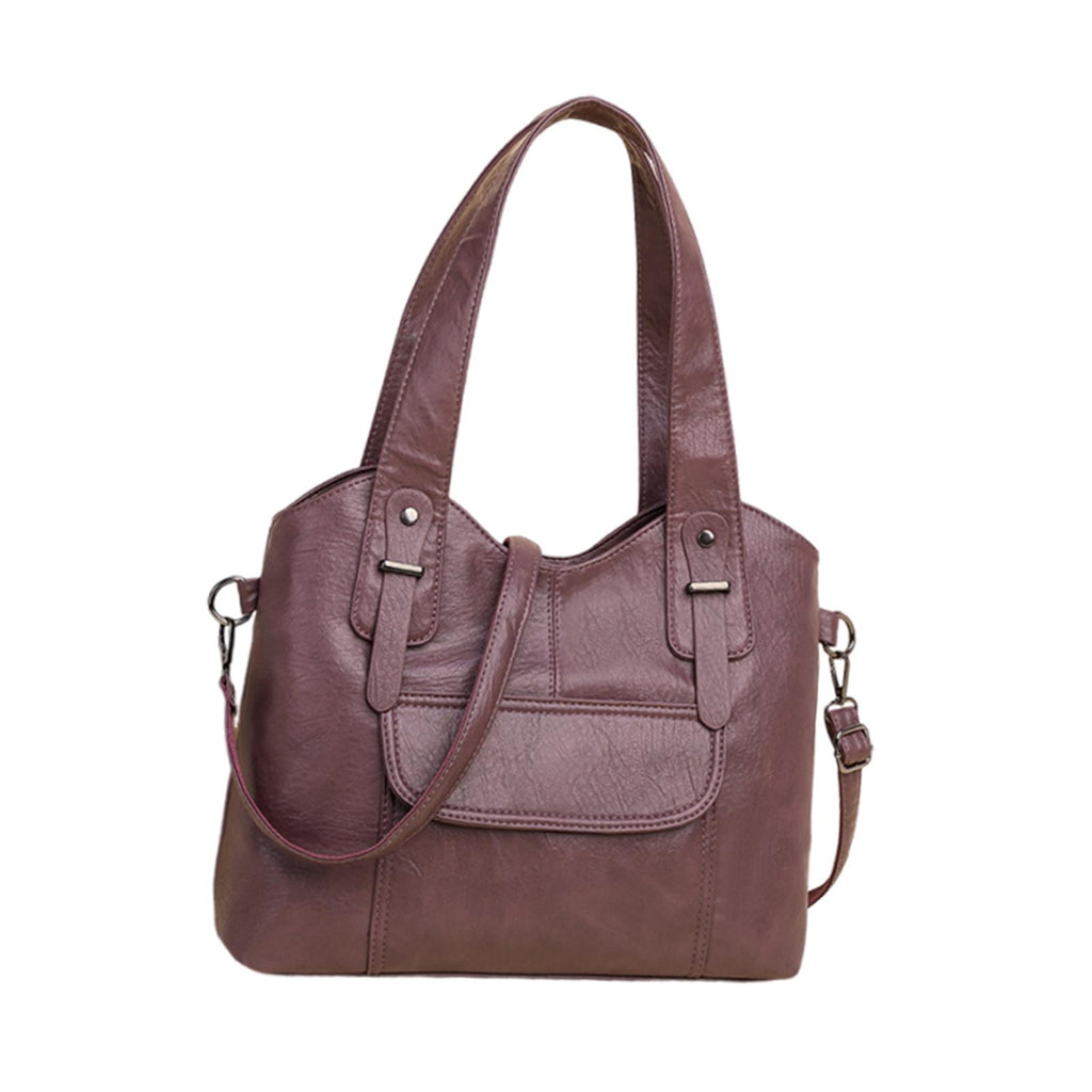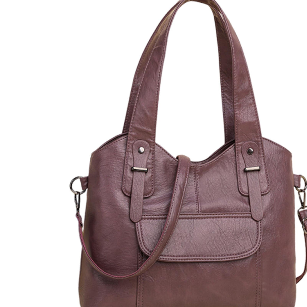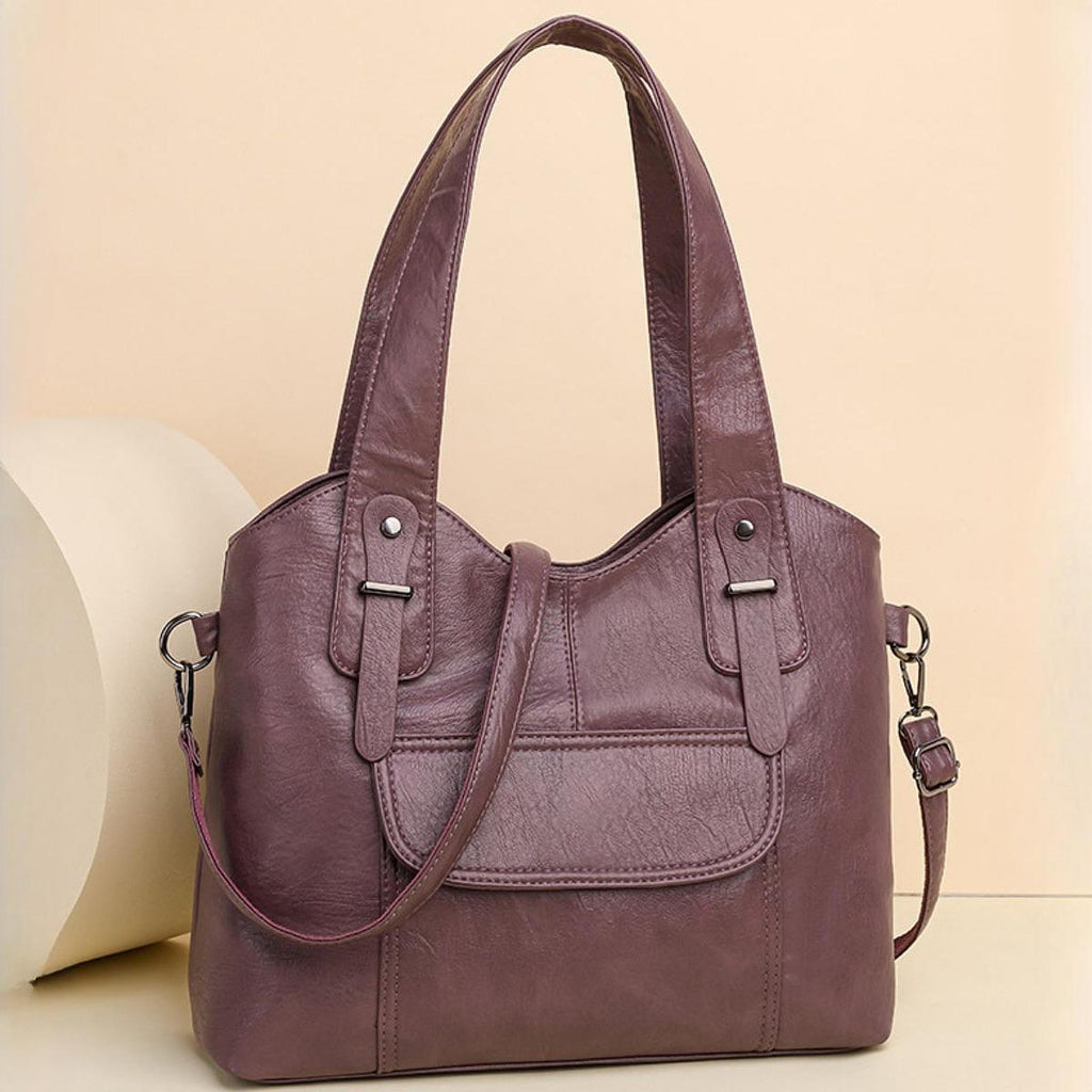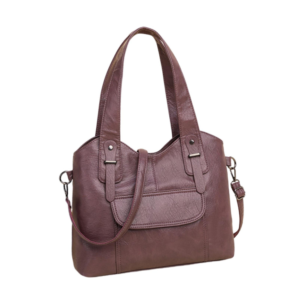 Maxbell PU Leather Shoulder Bag Stylish Soft Women Tote Bag for Everyday Work Travel Purple