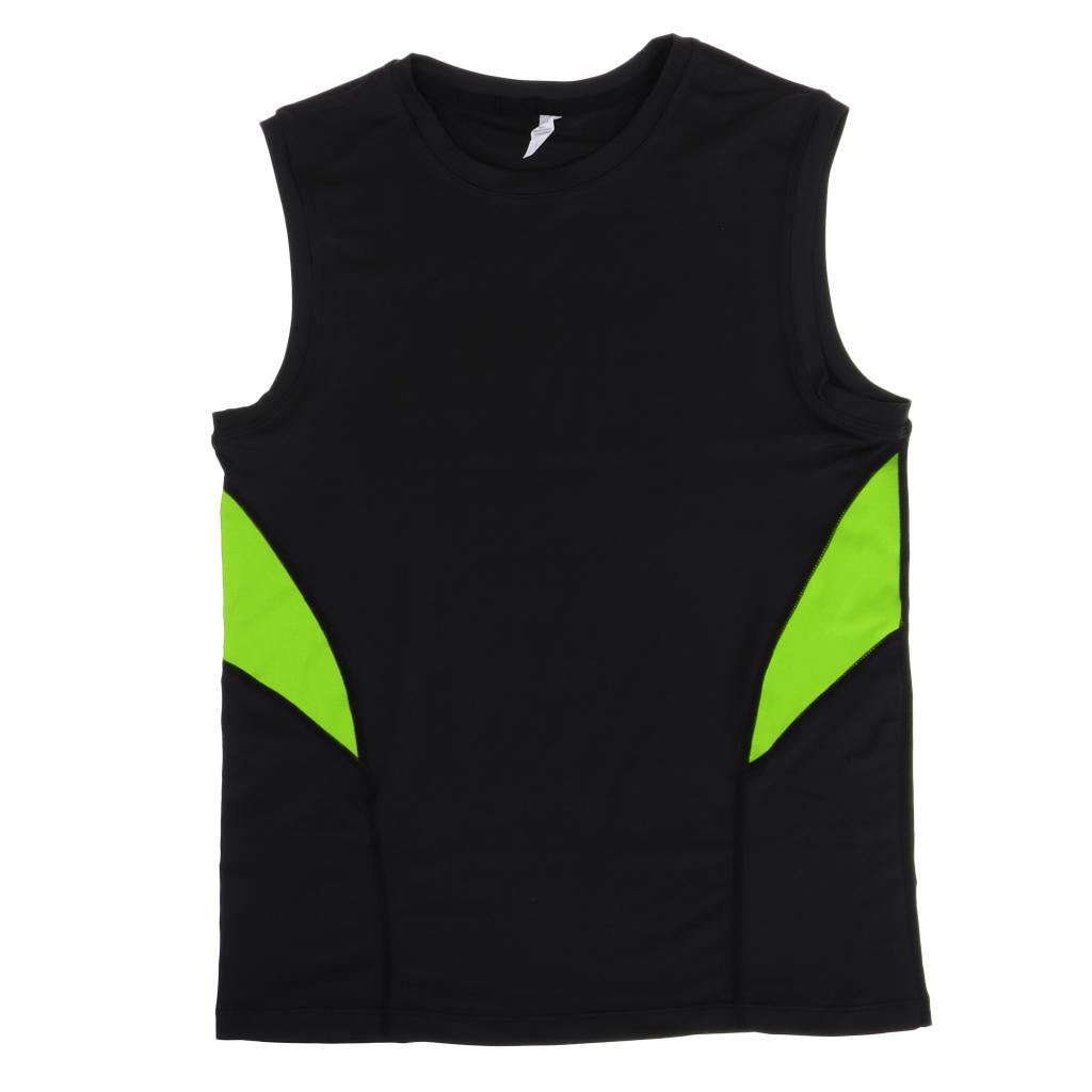Maxbell Quick Dry Gym Sleeveess Compression Shirt Sports Top T-shirt Black Green 3XL