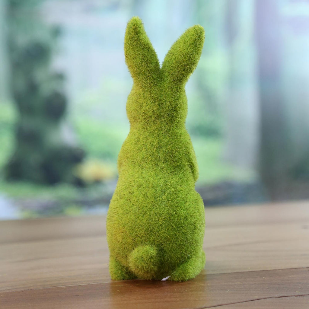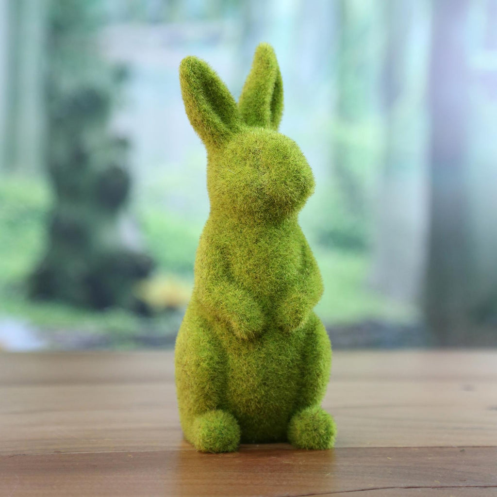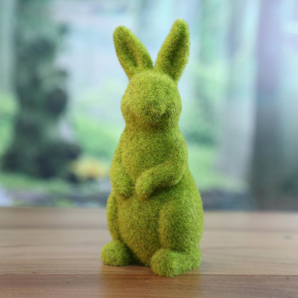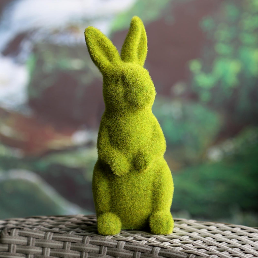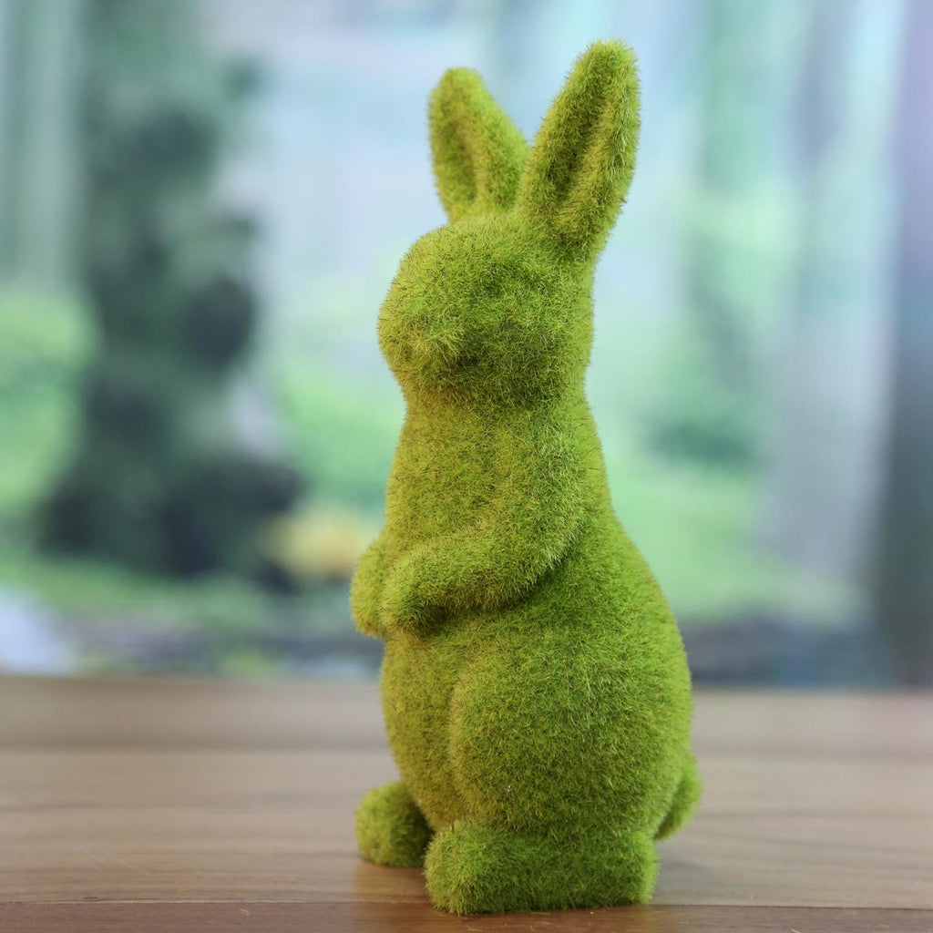 - This rabbit statue is made of high quality resin, it is hand-made, fine workmanship, simulation flocking.