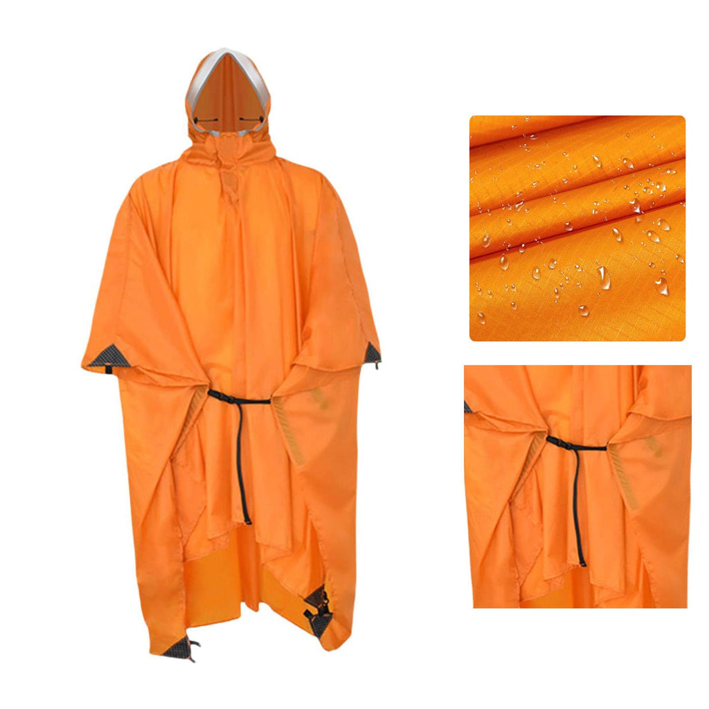Maxbell Rain Poncho with Hood Portable Rainwear Raincoat for Outdoor Camping Fishing Orange Sleeveless