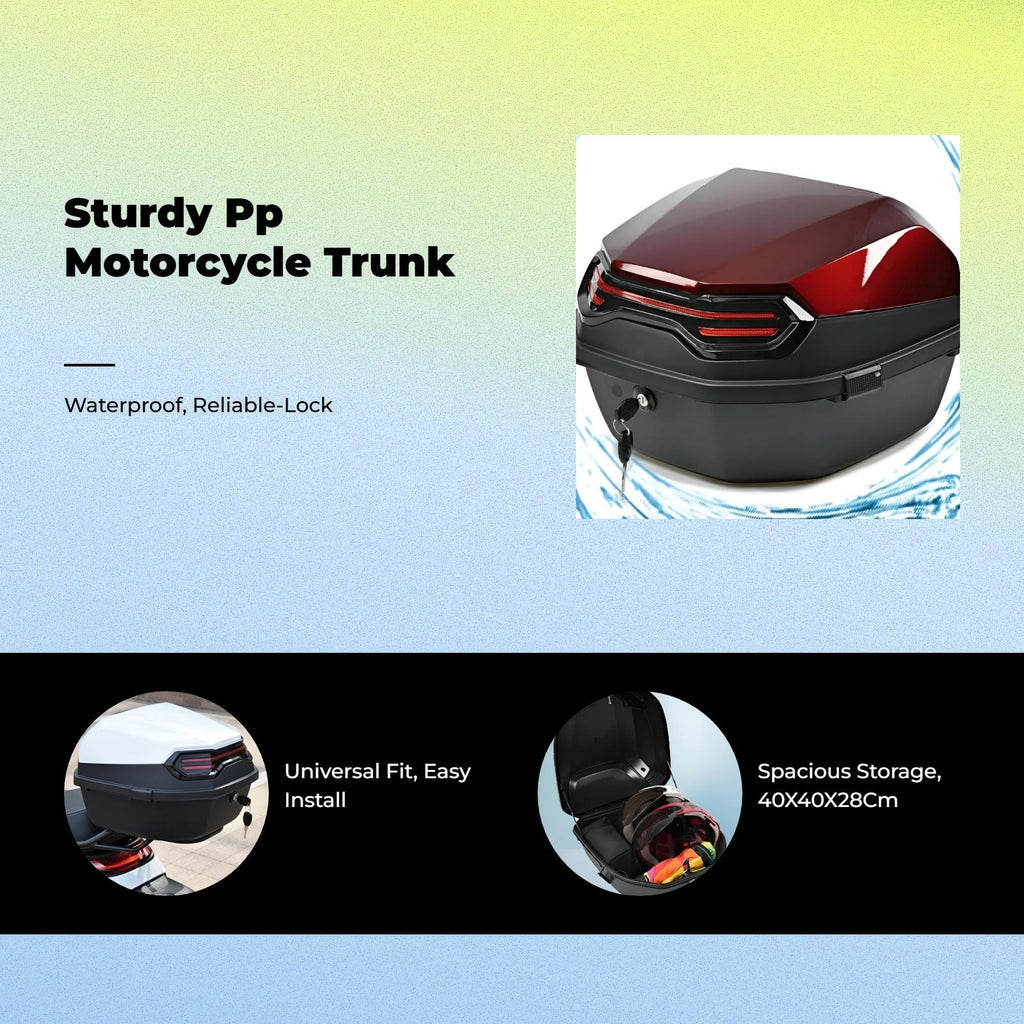 【Spacious Waterproof Rear Trunk for Electric Motorcycles】This rear trunk offers a large capacity and waterproof design, making it perfect for storing travel essentials, tools, and common items during long trips or commutes.【Sturdy and Collision-Resistant Material】Constructed from high-quality PP materials, this storage box is wear-resistant, collision-resistant, and built to withstand various weather conditions, ensuring long-term use.【Secure and Easy Installation】Features a sturdy lock and easy installation process, providing secure storage and peace of mind for your belongings on the highway.【Universal Fit for Multiple Vehicles】Designed to fit most electric motorcycles, scooters, and mopeds, this rear trunk is an adaptable storage solution for various vehicle designs.【Multi-Purpose Organizer for Outdoor and common Use】Perfect for outdoor adventures, everyday commutes, and organizing your gear, this trunk keeps your items protected from rain, soot, and ice.Specification: