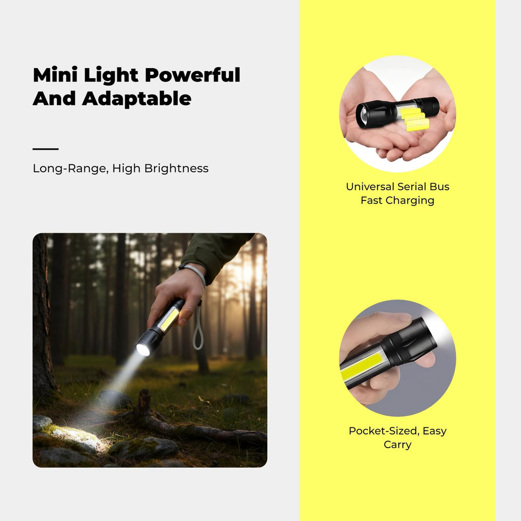 【super Luminous Rechargeable light 】This mini provides high brightness and long lighting, making it perfect for outdoor adventures, emergency situations, and common home use. 【Waterproof and Sturdy Design】Built with a waterproof this light is suitable for hiking, camping, and rainy weather, ensuring dependable performance in various environments. 【Portable and Convenient Charging】small and lightweight, it easily accommodates in your pocket or bag. The universal port rechargeable design offers convenient charging anytime, anywhere. 【Multi-Mode Lighting for Versatile Use】Features multiple brightness modes and adjustable lighting, perfect for common carry, work inspections, and emergency lighting. 【Usereasy-to-use LCD Power Display】Equipped with an LCD power display for instant battery level, this combines practicality and value.