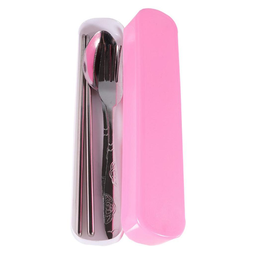 4 pieces flatware include: spoon + fork + chopsticks+ storage box.