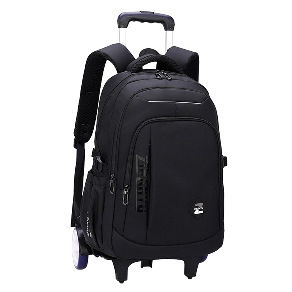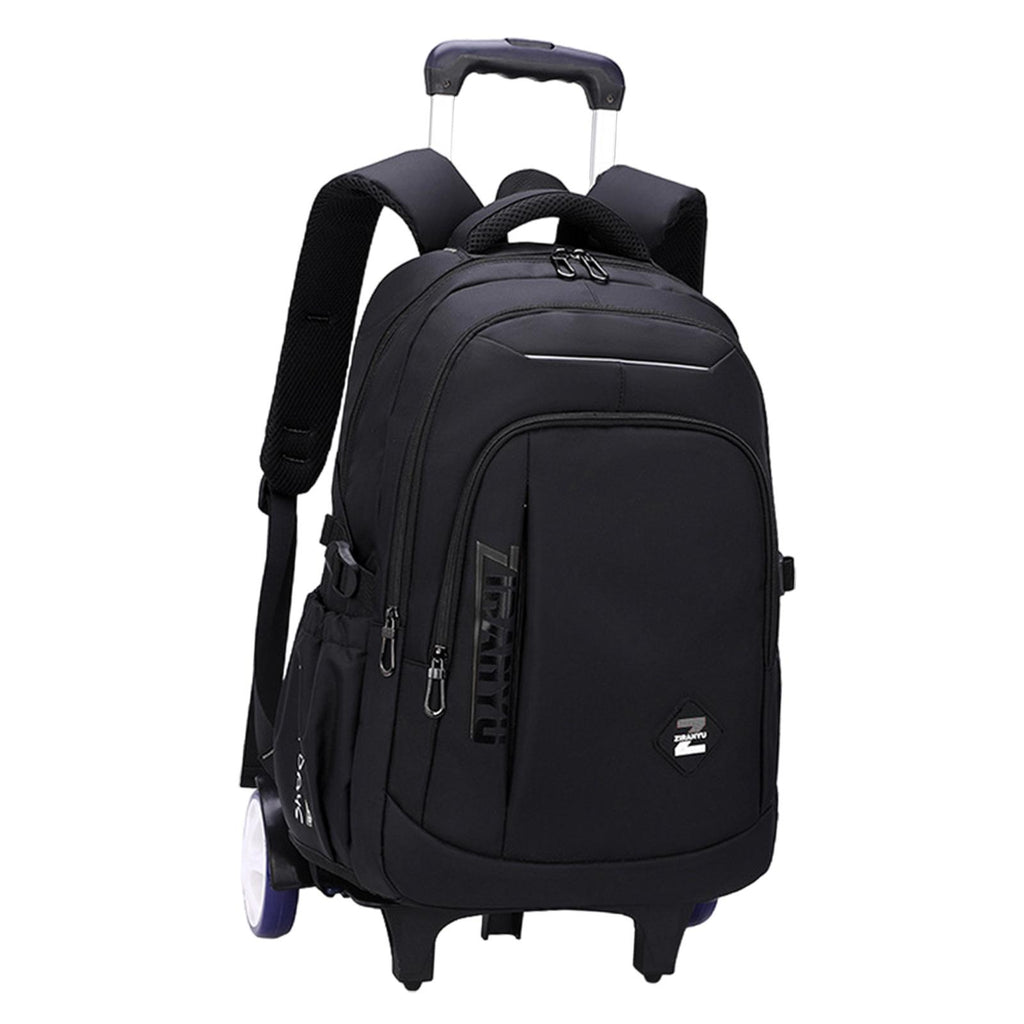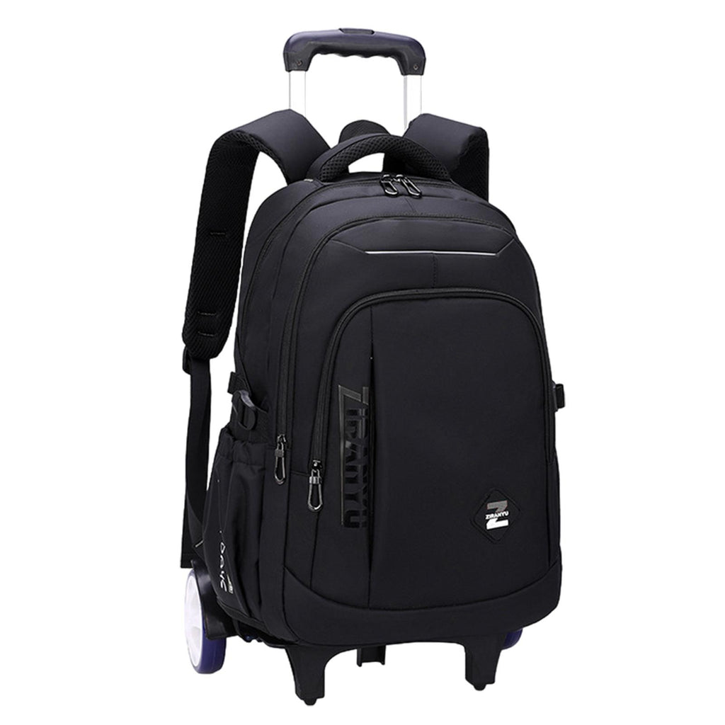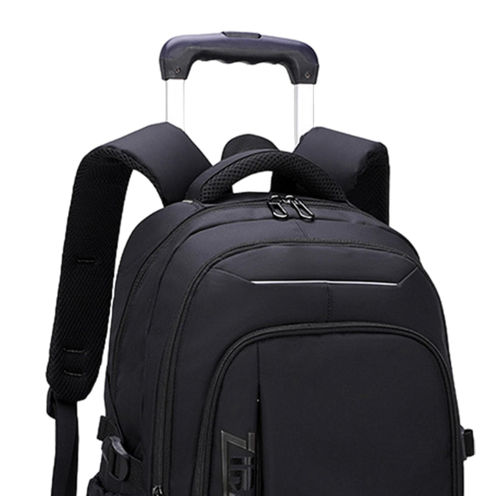 Maxbell Rolling Backpack Portable Nylon Trolley Suitcase for Business Travel Camping Black 2 Large Wheels