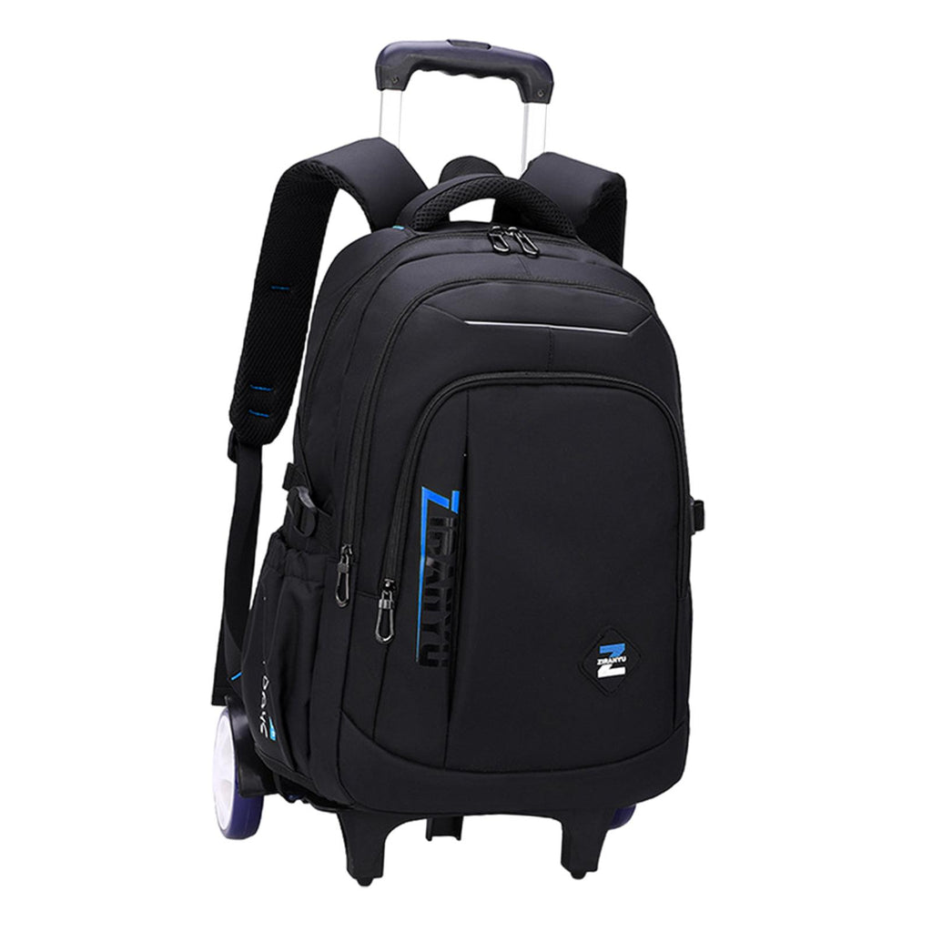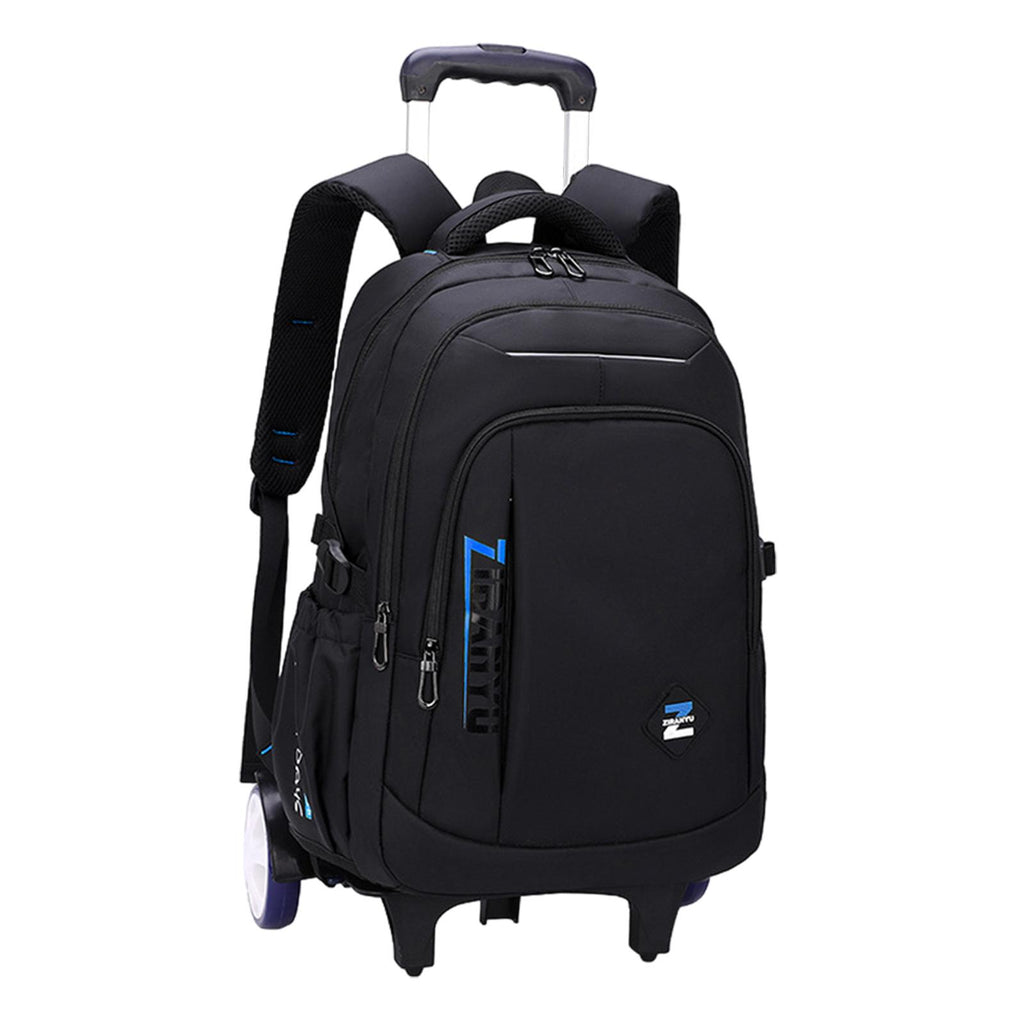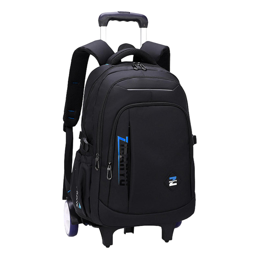 Maxbell Rolling Backpack Portable Nylon Trolley Suitcase for Business Travel Camping Blue 2 Large Wheels