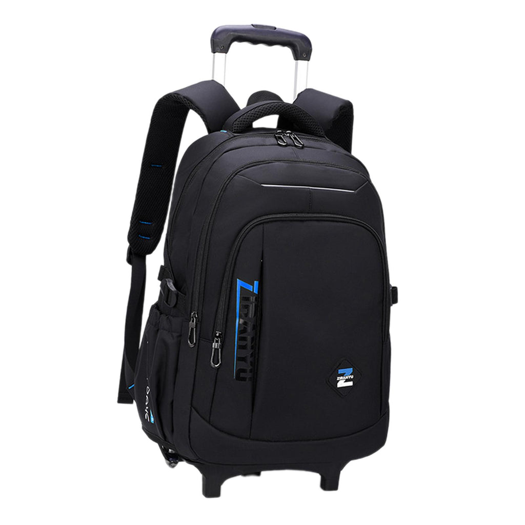 Maxbell Rolling Backpack Portable Nylon Trolley Suitcase for Business Travel Camping Blue 2 Small Wheels