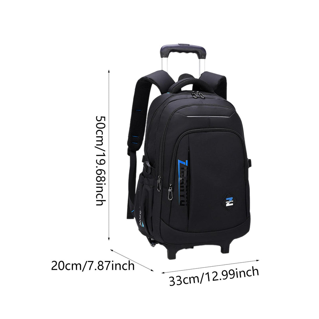 【Portable Backpack】: Rolling backpack with a removable trolley, sturdy handle and adjustable shoulder straps, can be pulled by the pull rod, carried on the back and carried by hand, easy to carry and labor saving.