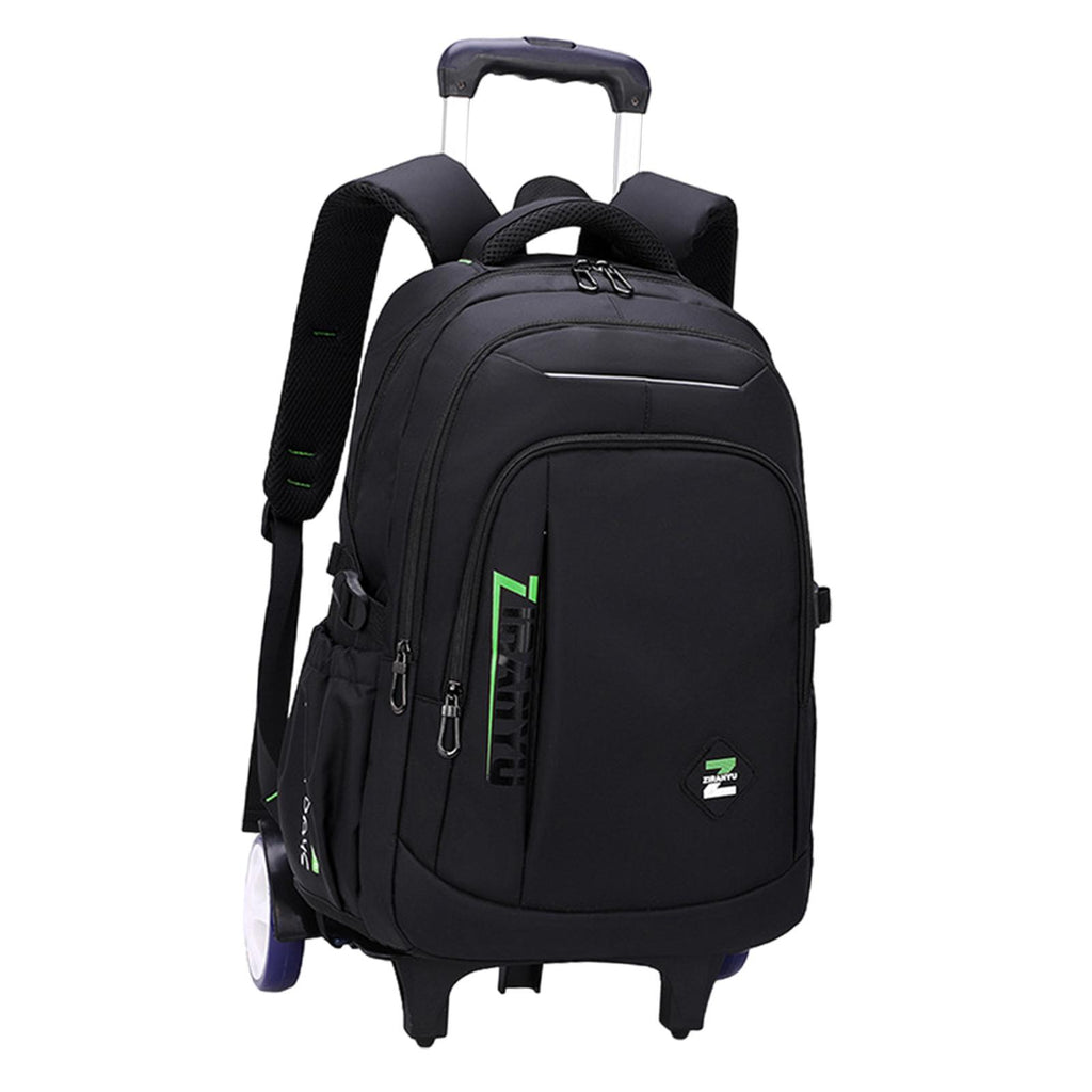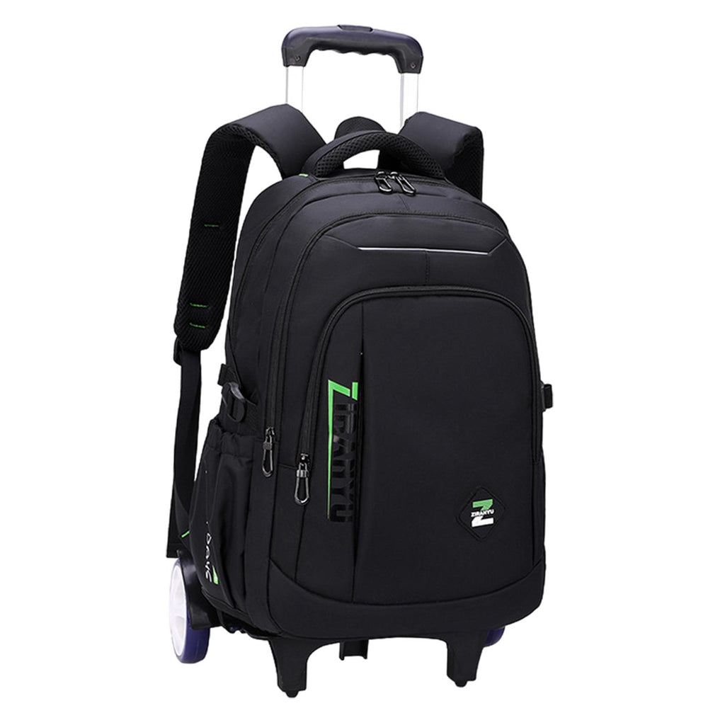 Maxbell Rolling Backpack Portable Nylon Trolley Suitcase for Business Travel Camping Green 2 Large Wheels