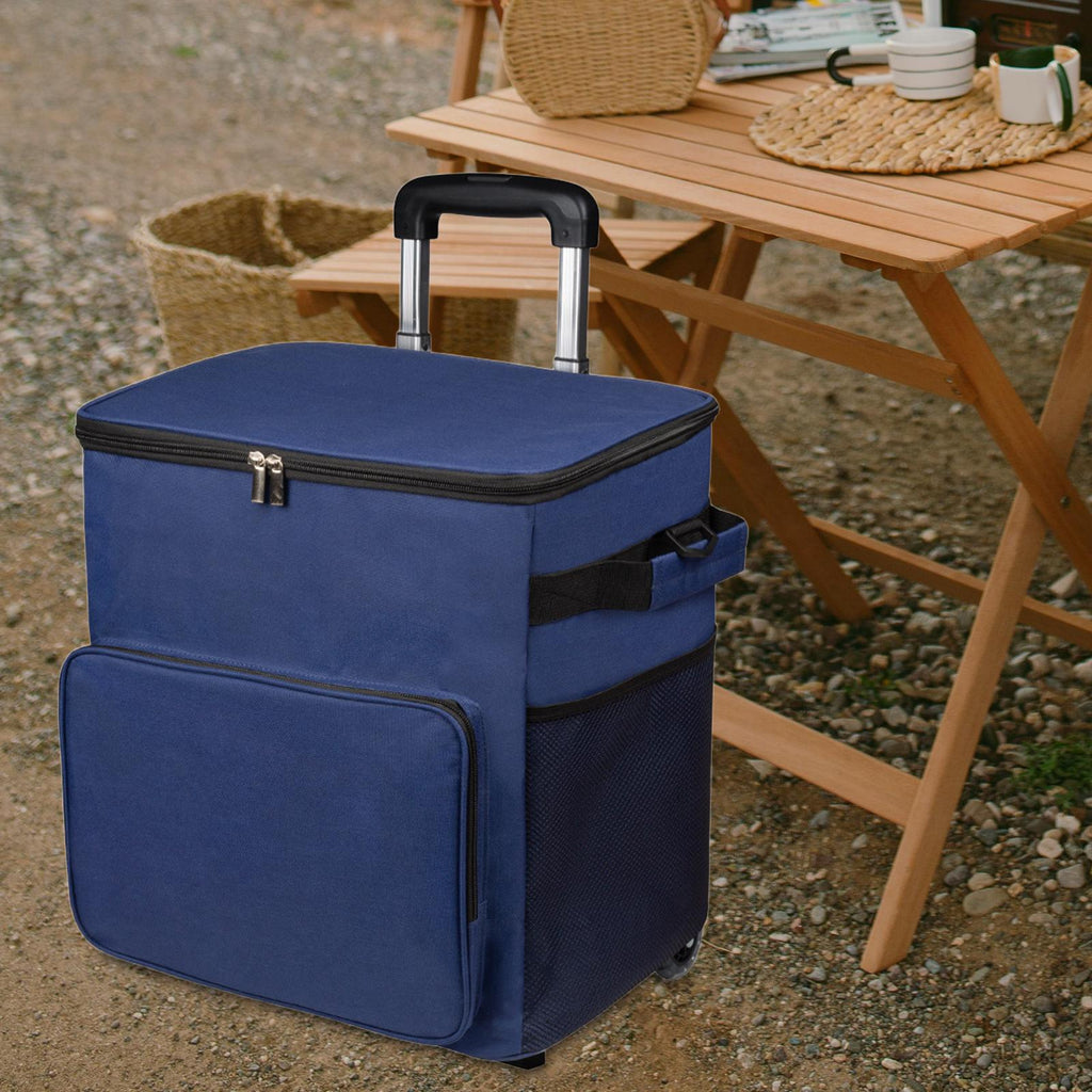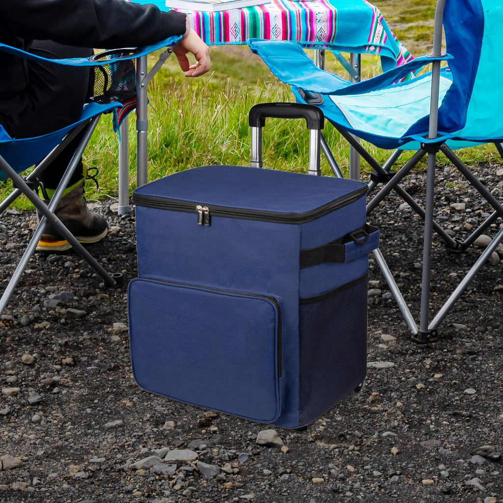 【Spacious 35L Capacity】: This Rolling Cooler is designed to meet the needs of the whole family, capable of holding up to 60 cans of 330ml beverages. It's suitable for family outings, picnics, or market vendors, providing ample space to keep food and drinks at the right temperature for extended periods