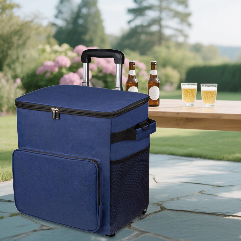 Maxbell Rolling Cooler Compact Chiller Soft Travel Cooler for Beach Shopping Camping Navy blue