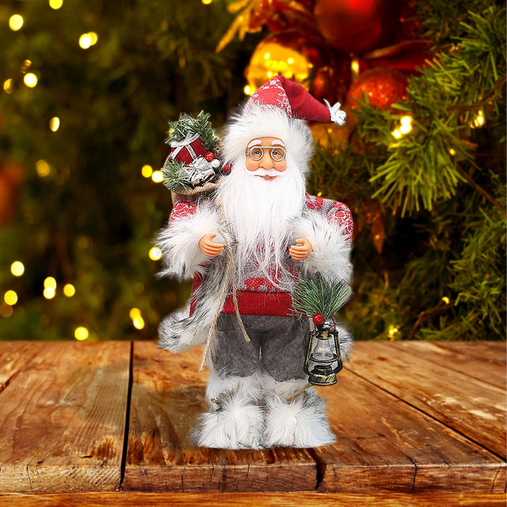 Maxbell Santa Claus Figurine Cute Santa Doll for Indoor Outdoor Festival Celebration Red