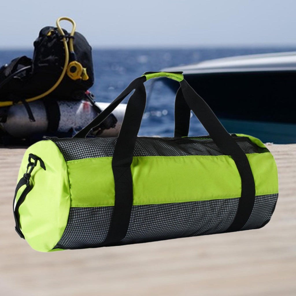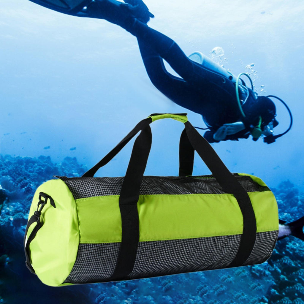 【Spacious design】: With a size of 65cmx35cmx25cm/25.59inchx13.78inchx9.84inch, mesh dive duffel bag can easily store even the longest fins and provide ample space for all your diving essentials