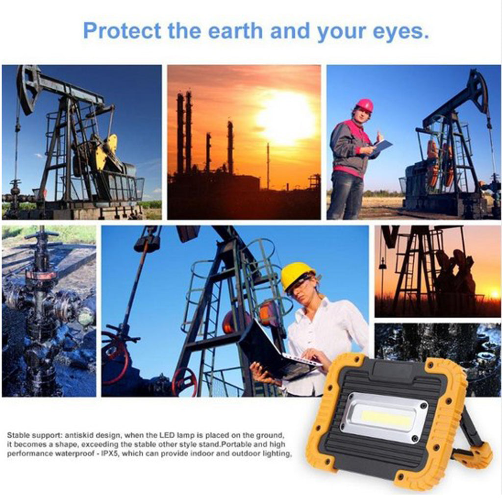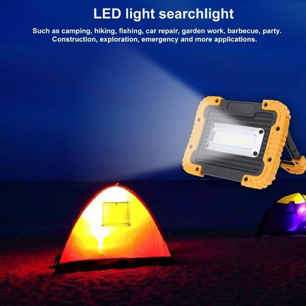Portable and High Performance of Waterproof -Grade IPX5, this floodlight could offer lighting for indoor and outdoor use, such as Camping, Hiking, Fishing, Car Fixing, Garden working, Barbecue, Party, Construction, Exploration, Emergency and more application.