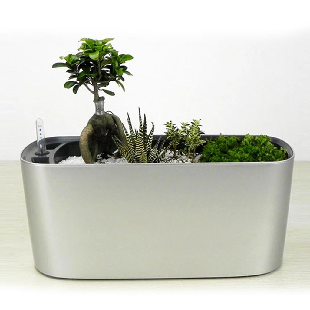 Max Maxb Self Watering Planter Flower Pot Indoor Outdoor Home Garden Decor Silver